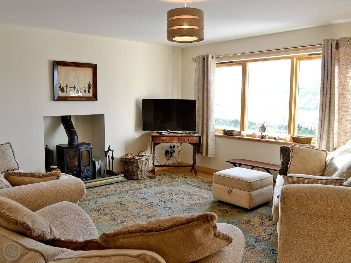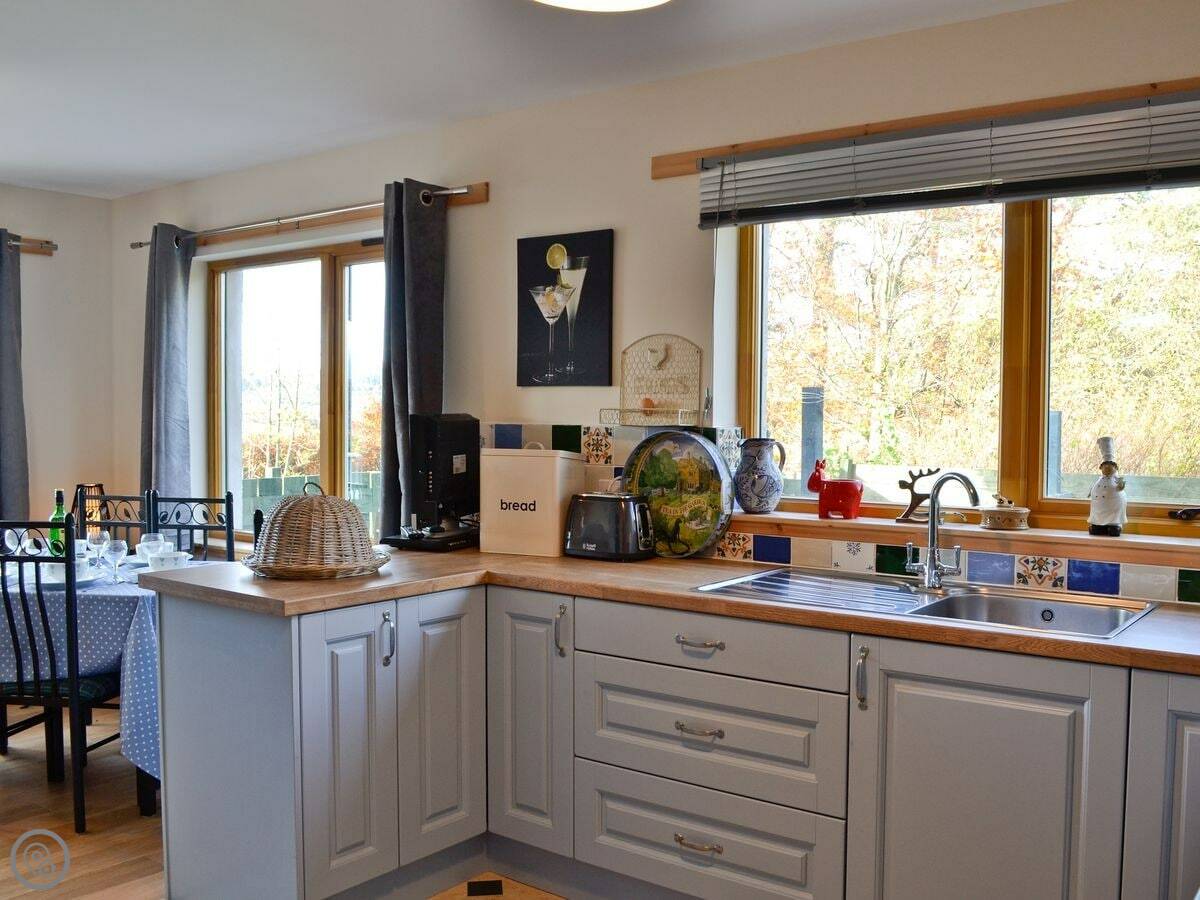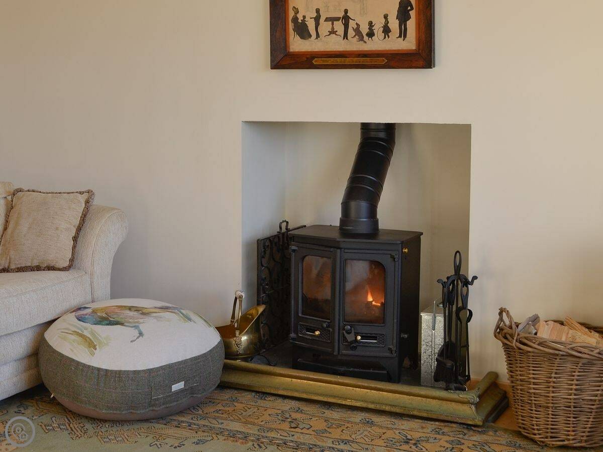 It sleeps six. Three bedrooms, two bathrooms. One of the bathrooms is a wet room on the ground floor. It has a 4 Star rating so it's well equipped. Everything's included: bedding, towels, washing machine, dishwasher. There's a woodburning stove for the cooler evenings.