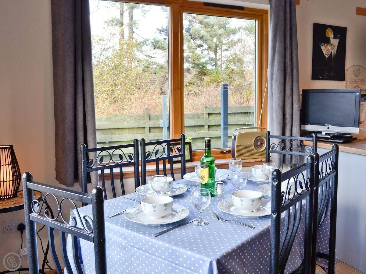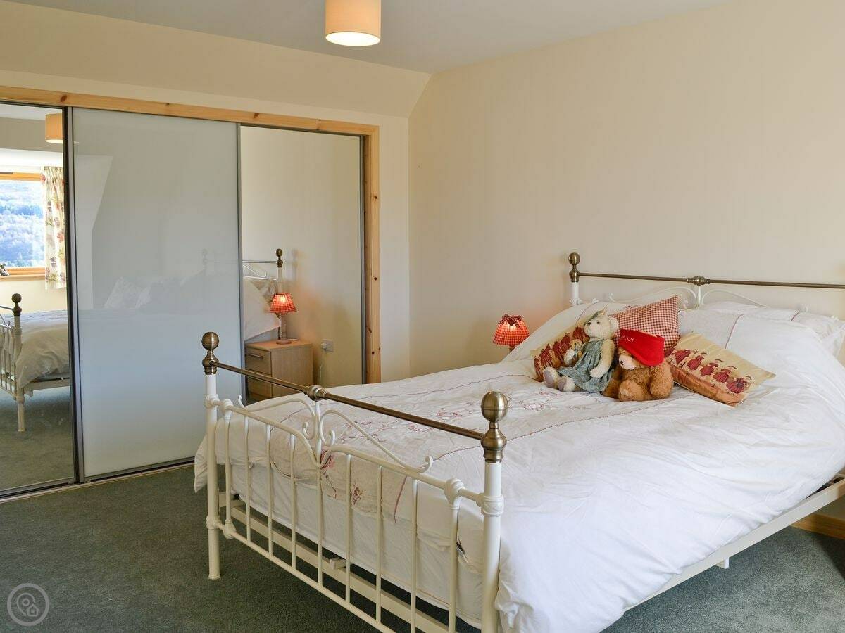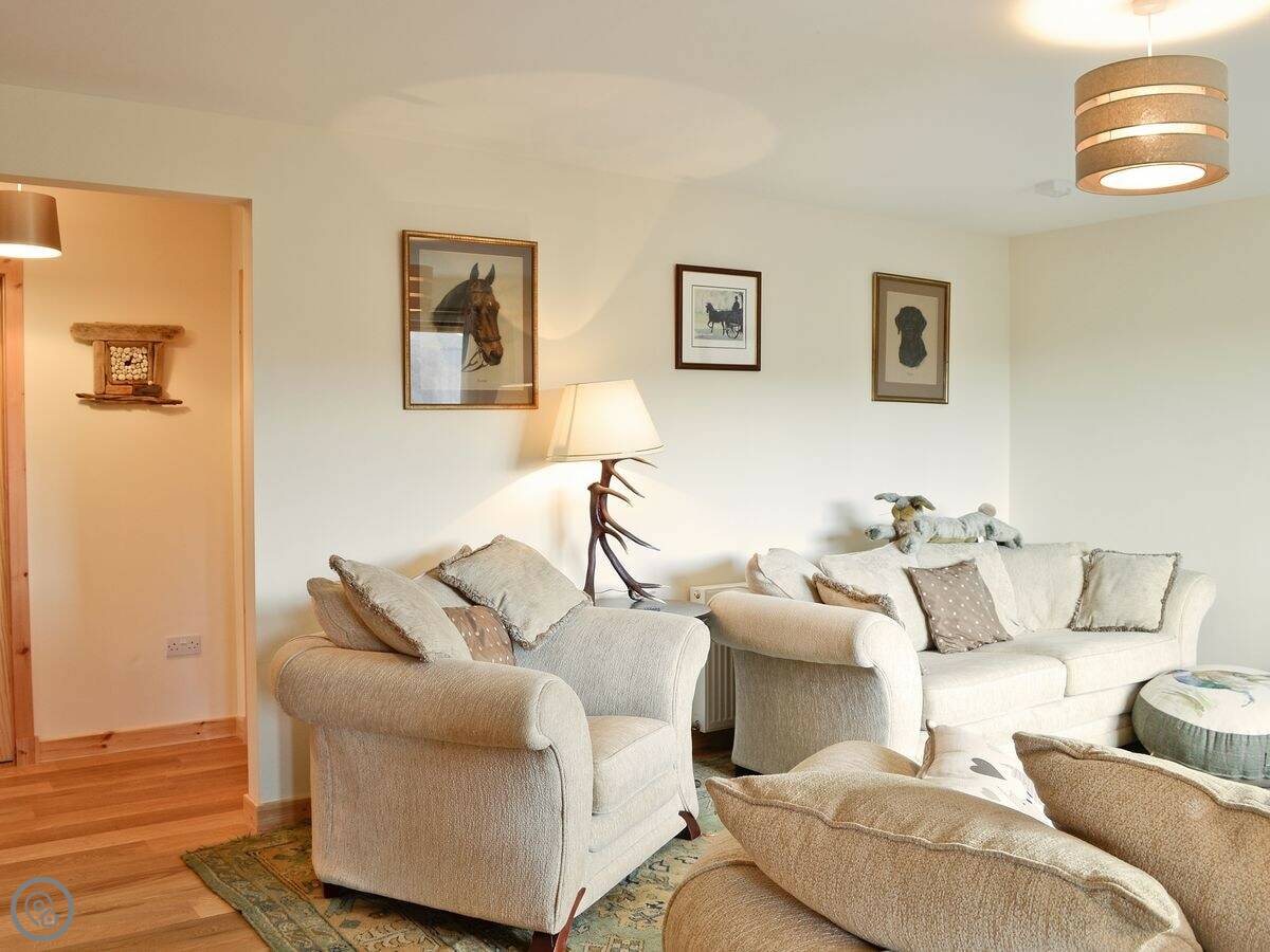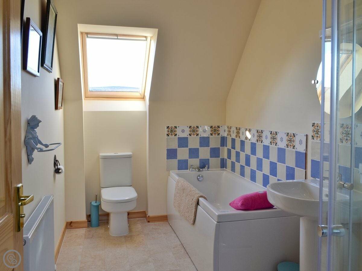 It sleeps six. Three bedrooms, two bathrooms. One of the bathrooms is a wet room on the ground floor. It has a 4 Star rating so it's well equipped. Everything's included: bedding, towels, washing machine, dishwasher. There's a woodburning stove for the cooler evenings.