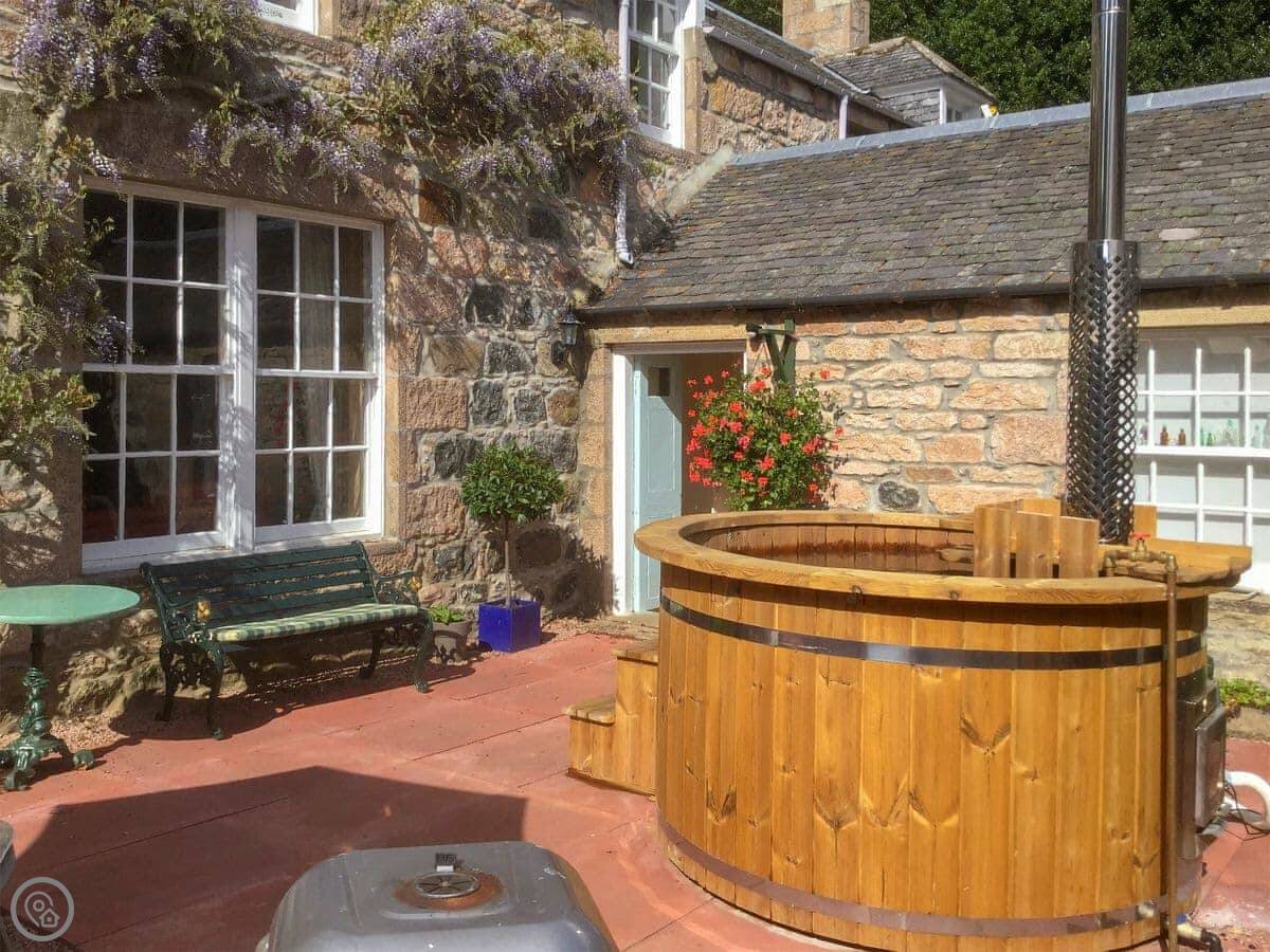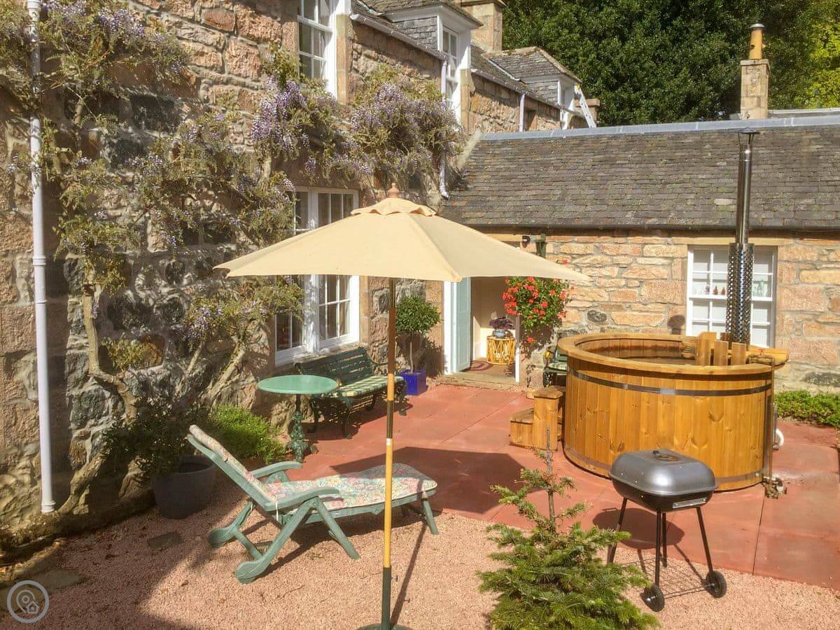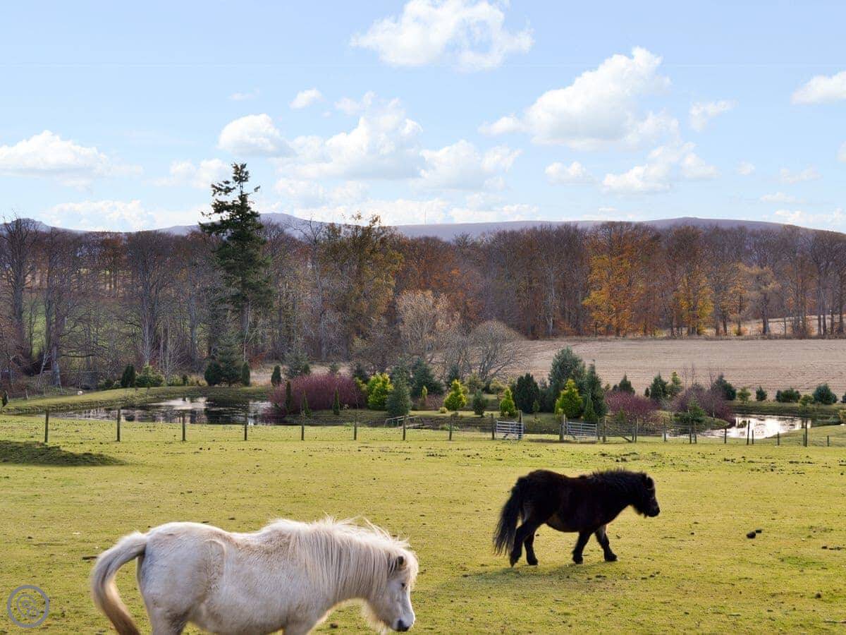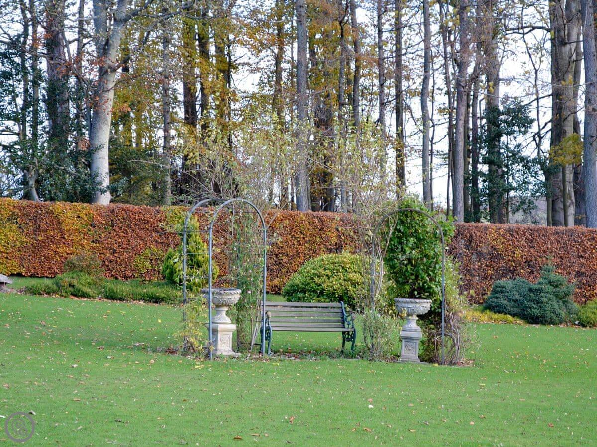 The Mews is part of our house. The main house is from 1687, and your bit was added on in 1842. It's on the north side. You get the garden to yourselves, which is walled, and the parkland out front. We have miniature Shetland ponies in the parkland, and there's a small lake down there with an island.