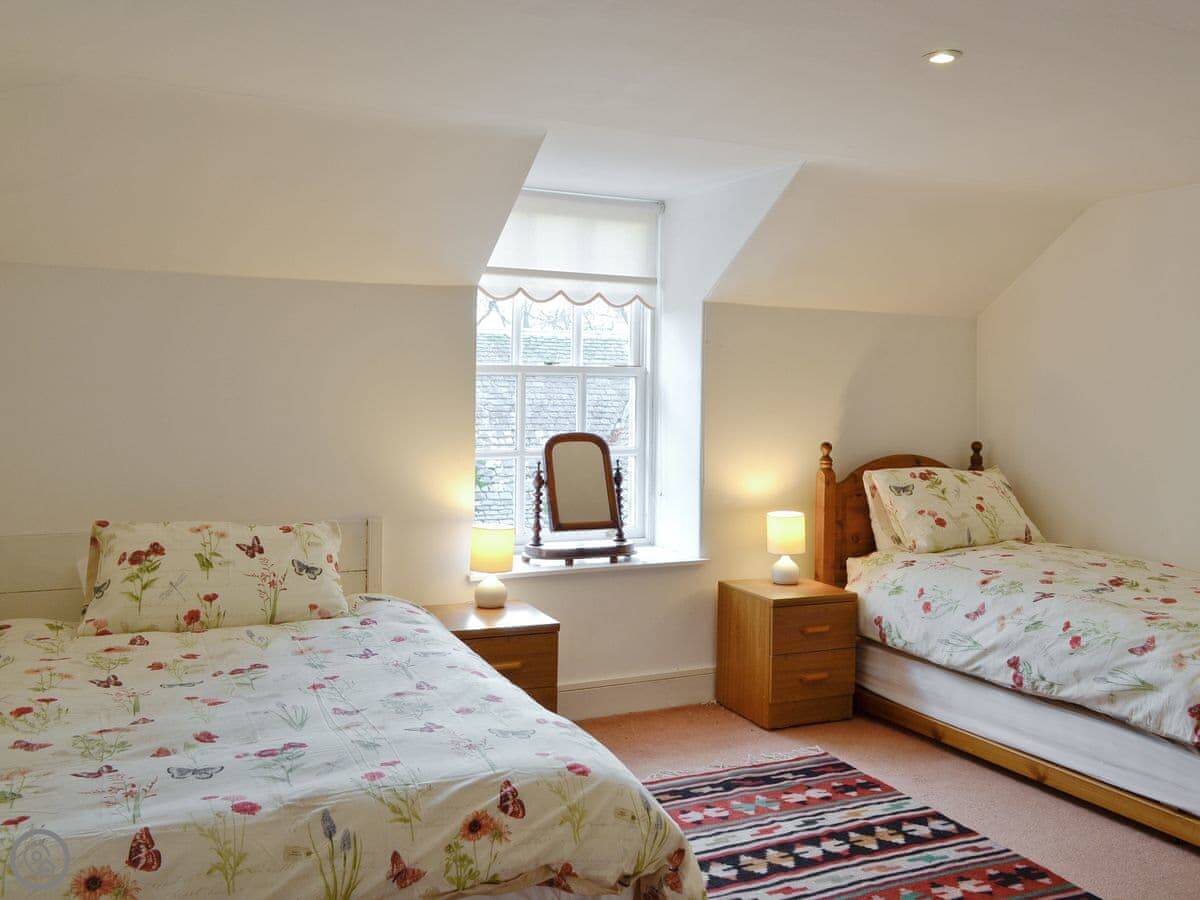 It sleeps eight. Four bedrooms, two bathrooms. It's got a 3 Star rating. It's clean and comfortable but it's an old layout. There are no upstairs bathrooms. The building is listed so we can't add one.