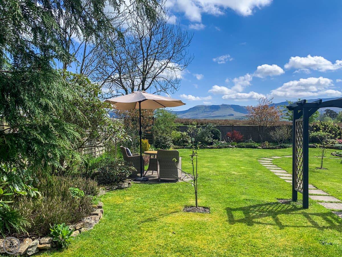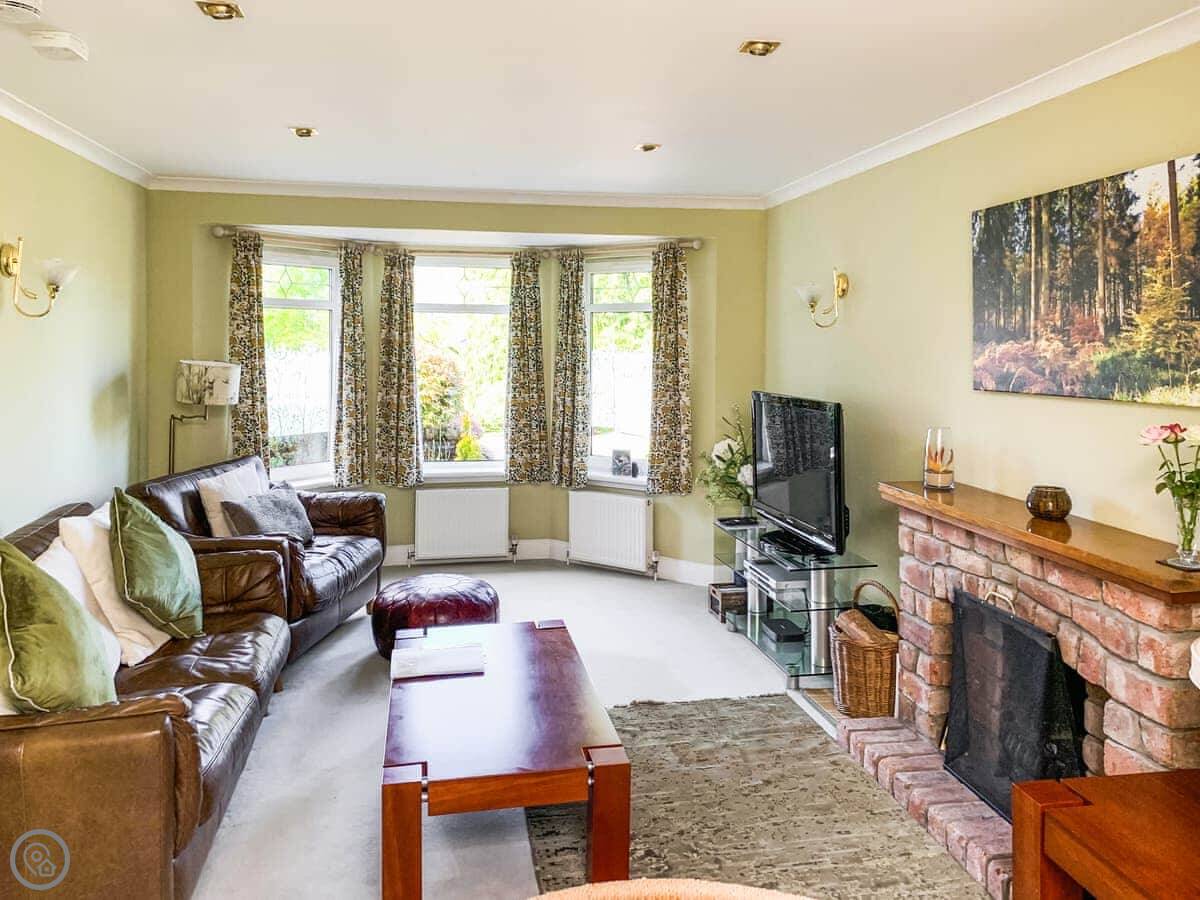 The living room looks out over the garden and you get a clear view of the Campsie and Fintry hills. It's very peaceful. There's a woodburning stove for colder nights. The garden is enclosed and it's yours to use.