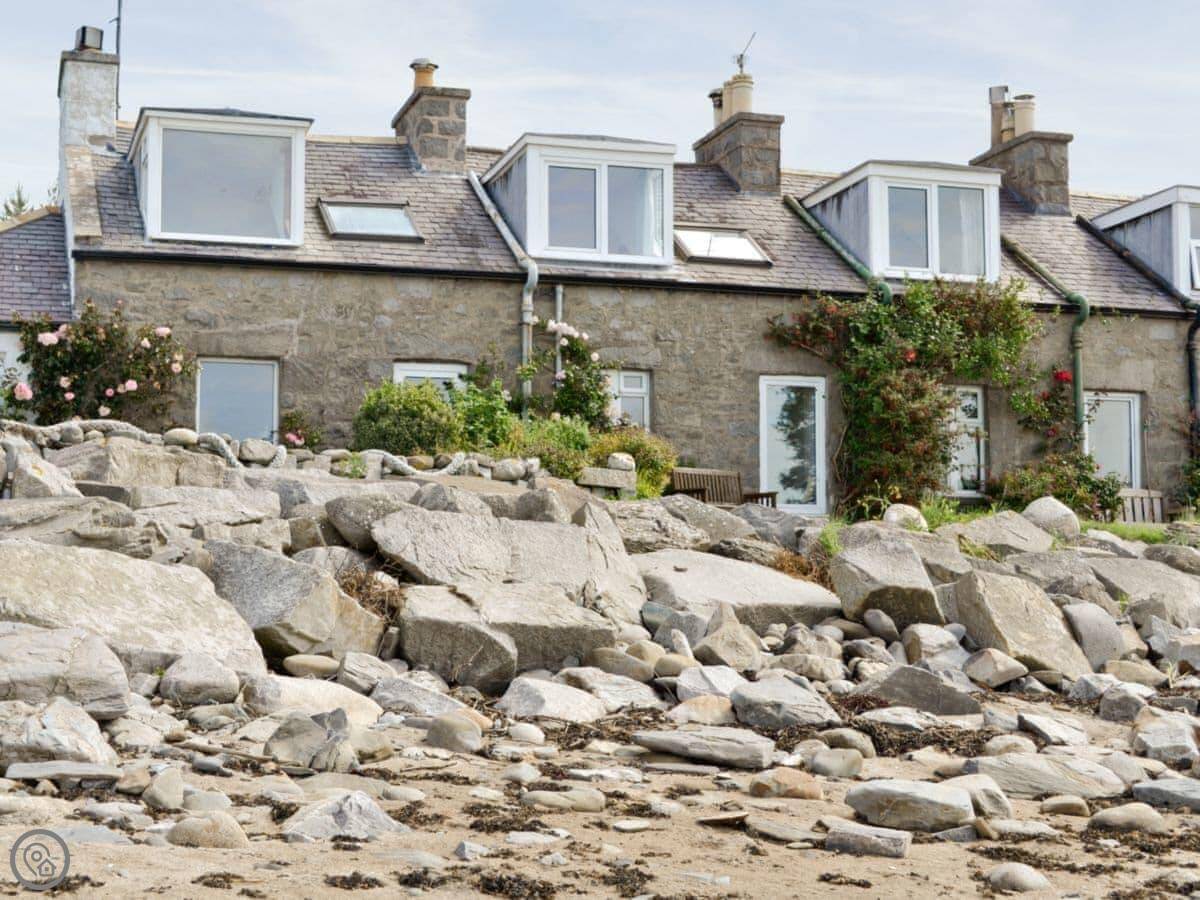 The cottage door opens straight onto the tidal beach. It's a nature reserve, so there are a lot of birds, like oystercatchers. You can hear them.