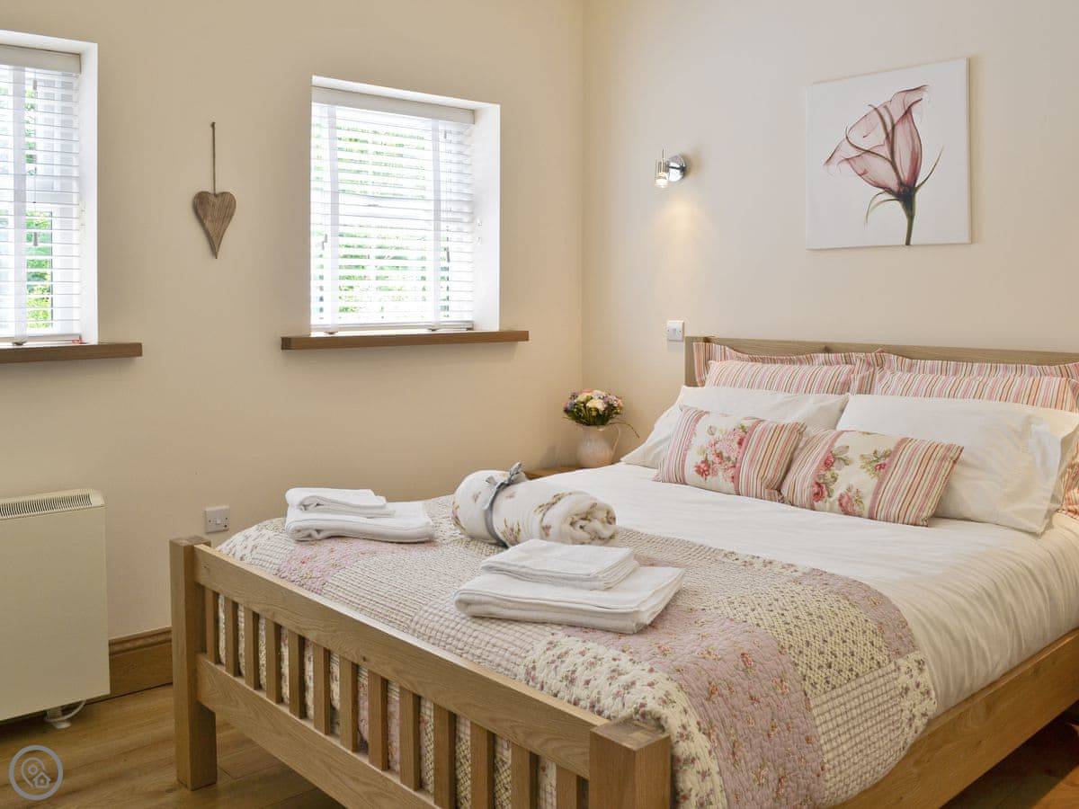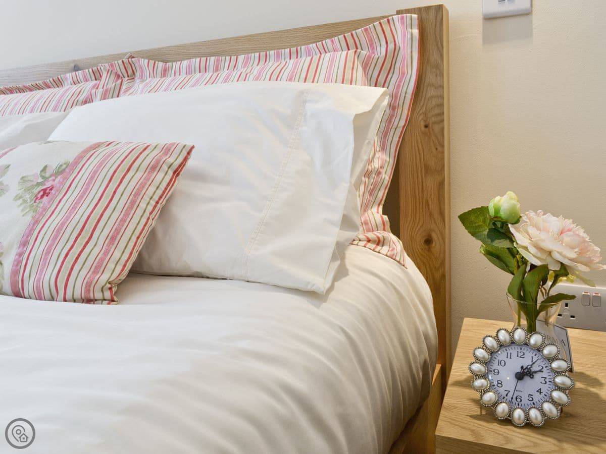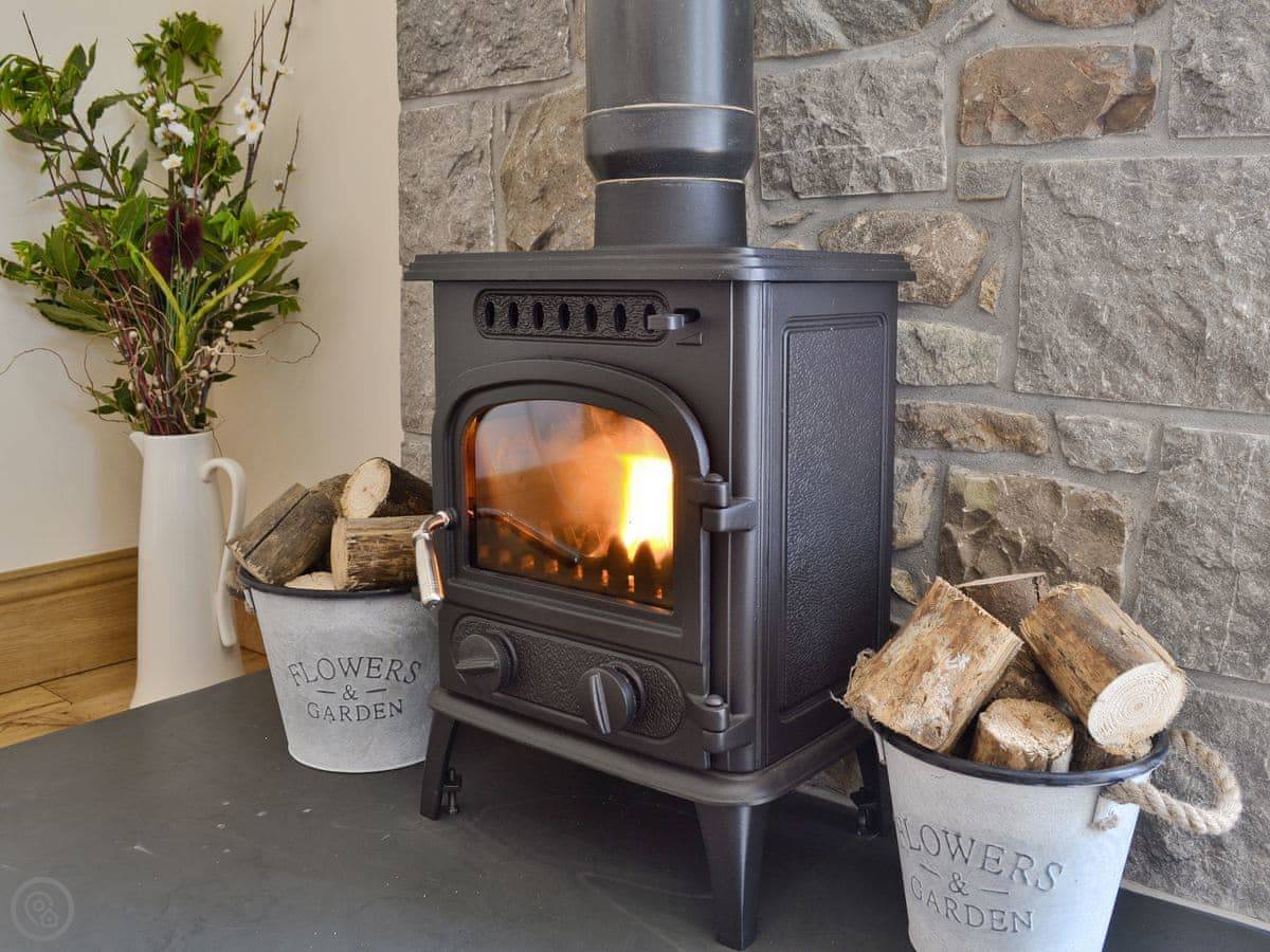 It sleeps four, in two bedrooms. There's one bathroom with a walk-in shower and a bath. It's got a 4 Star rating, which means it's well-equipped and comfortable. The living room has a woodburning stove for colder evenings. We leave you a basket of logs to get started.