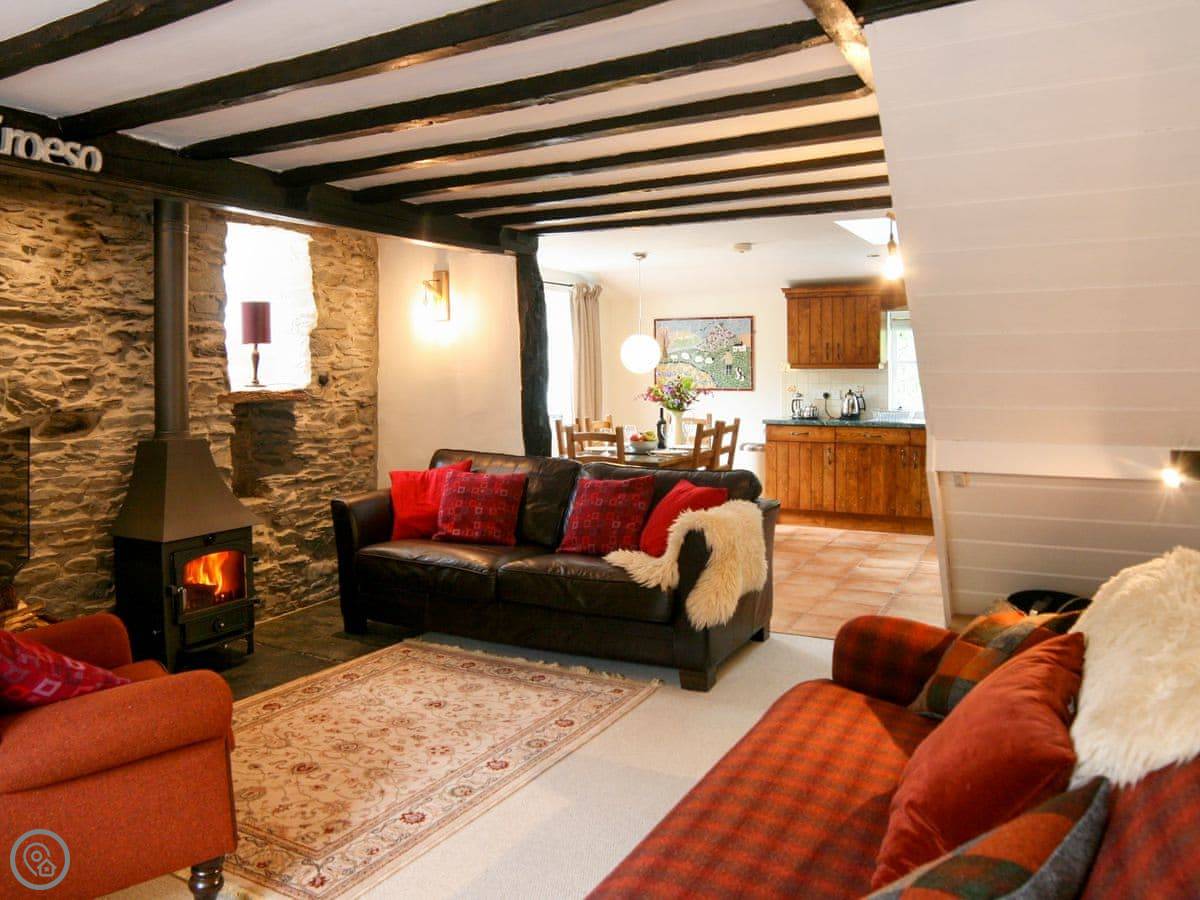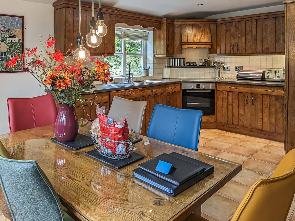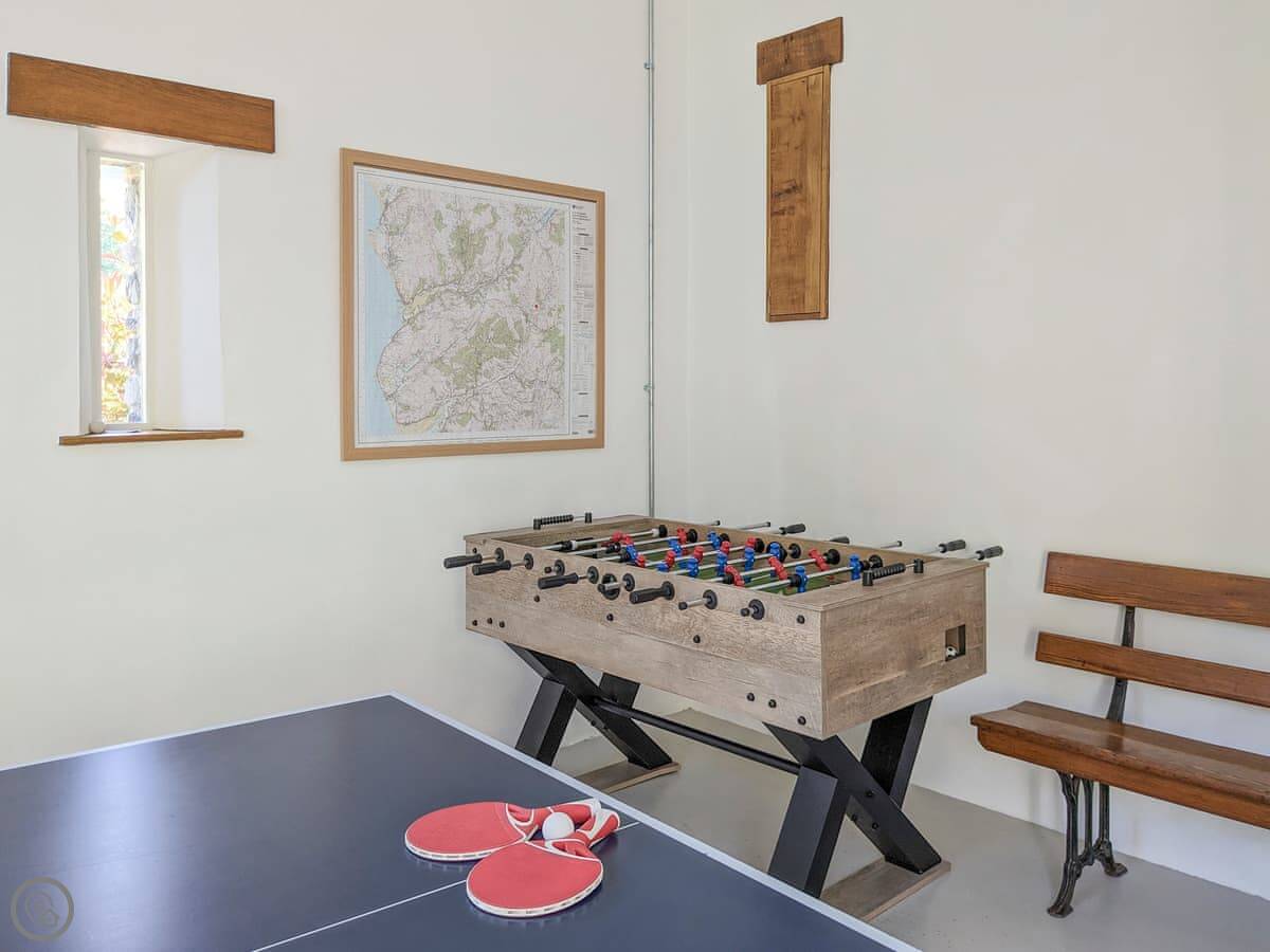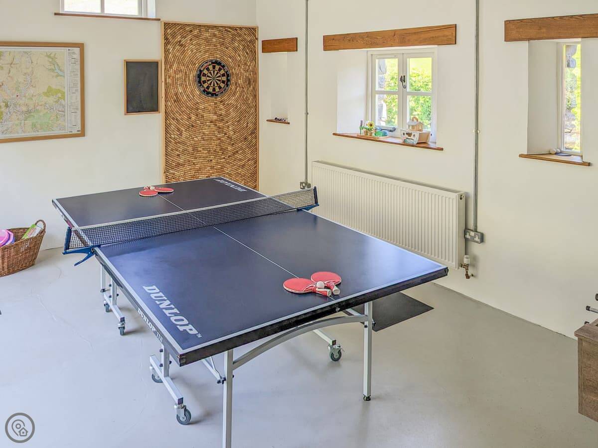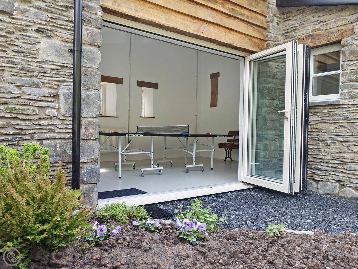 It sleeps six. Three bedrooms, two bathrooms. It's got a 5 Star rating, which means it's well-equipped and in good nick. The wood burner works well. There's a games room in the outbuilding, which is handy if the weather turns.