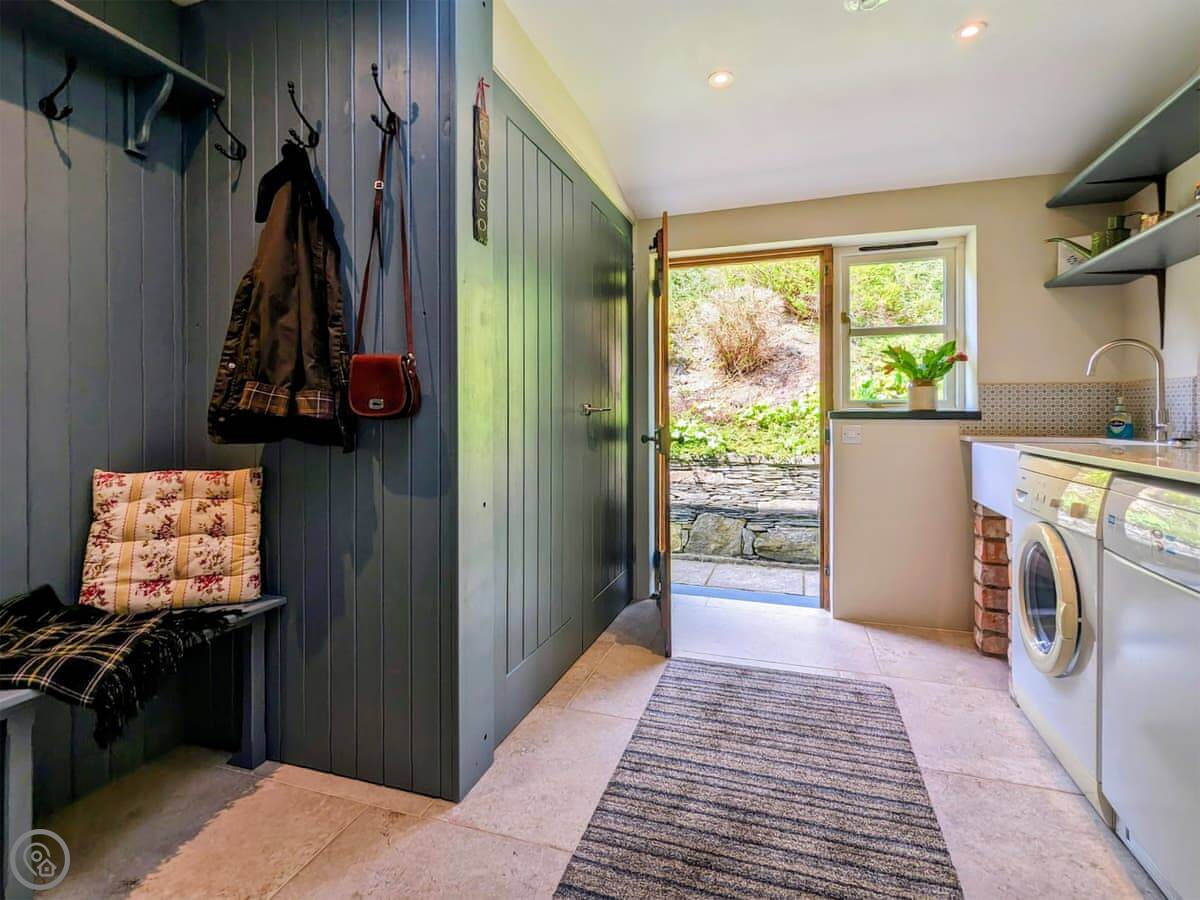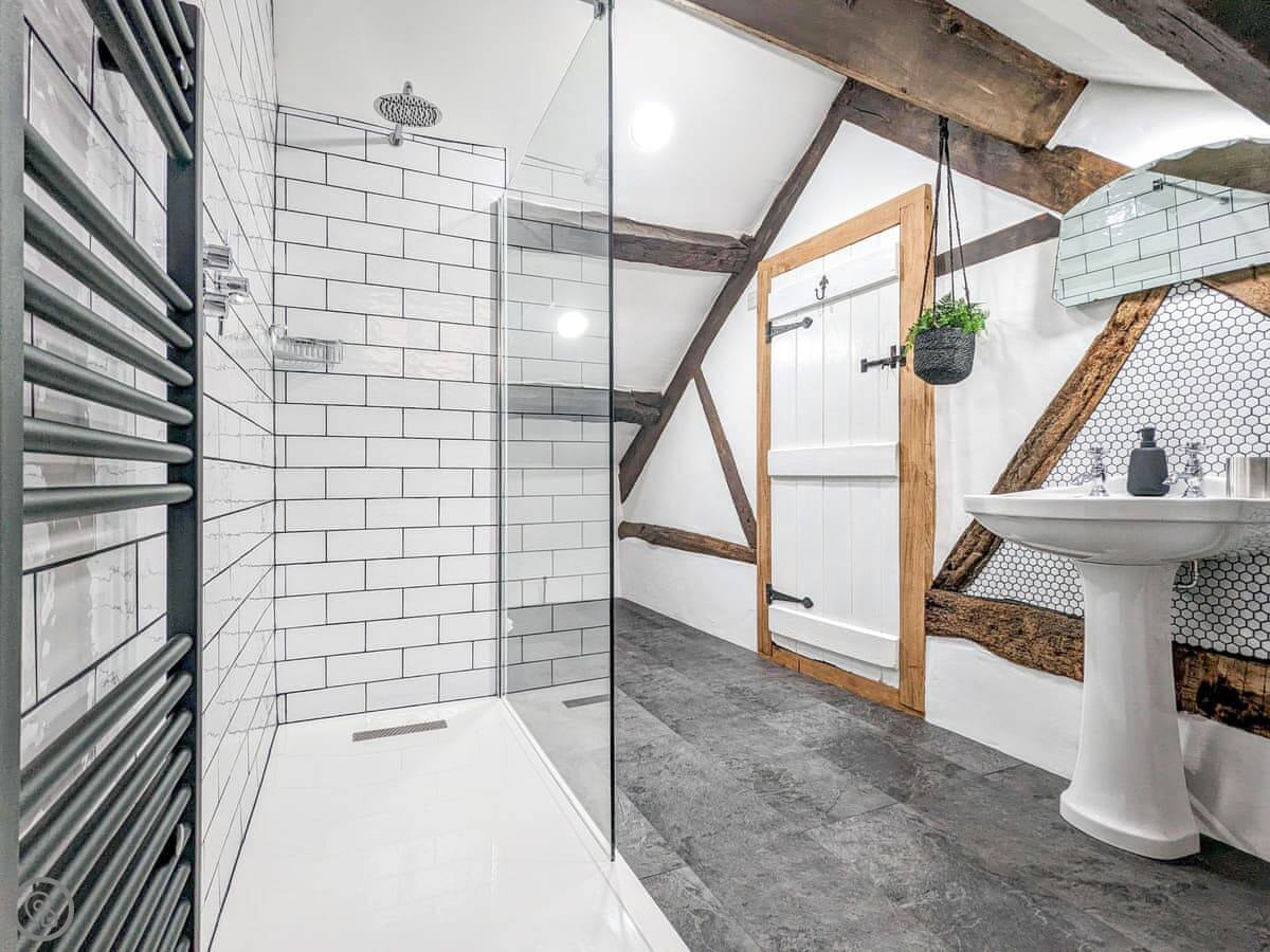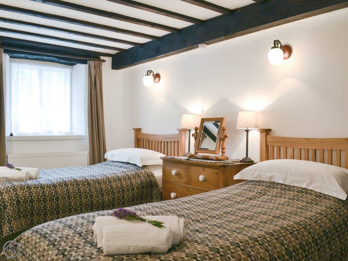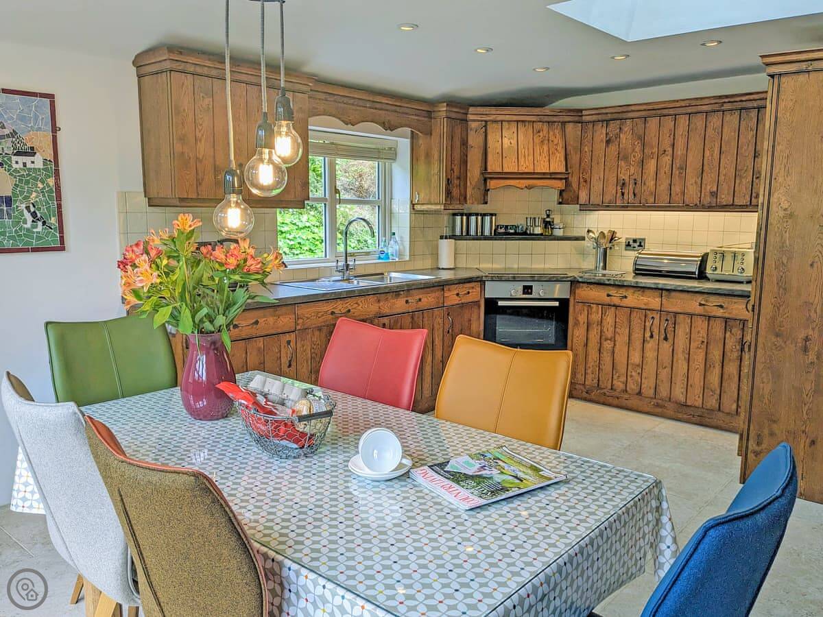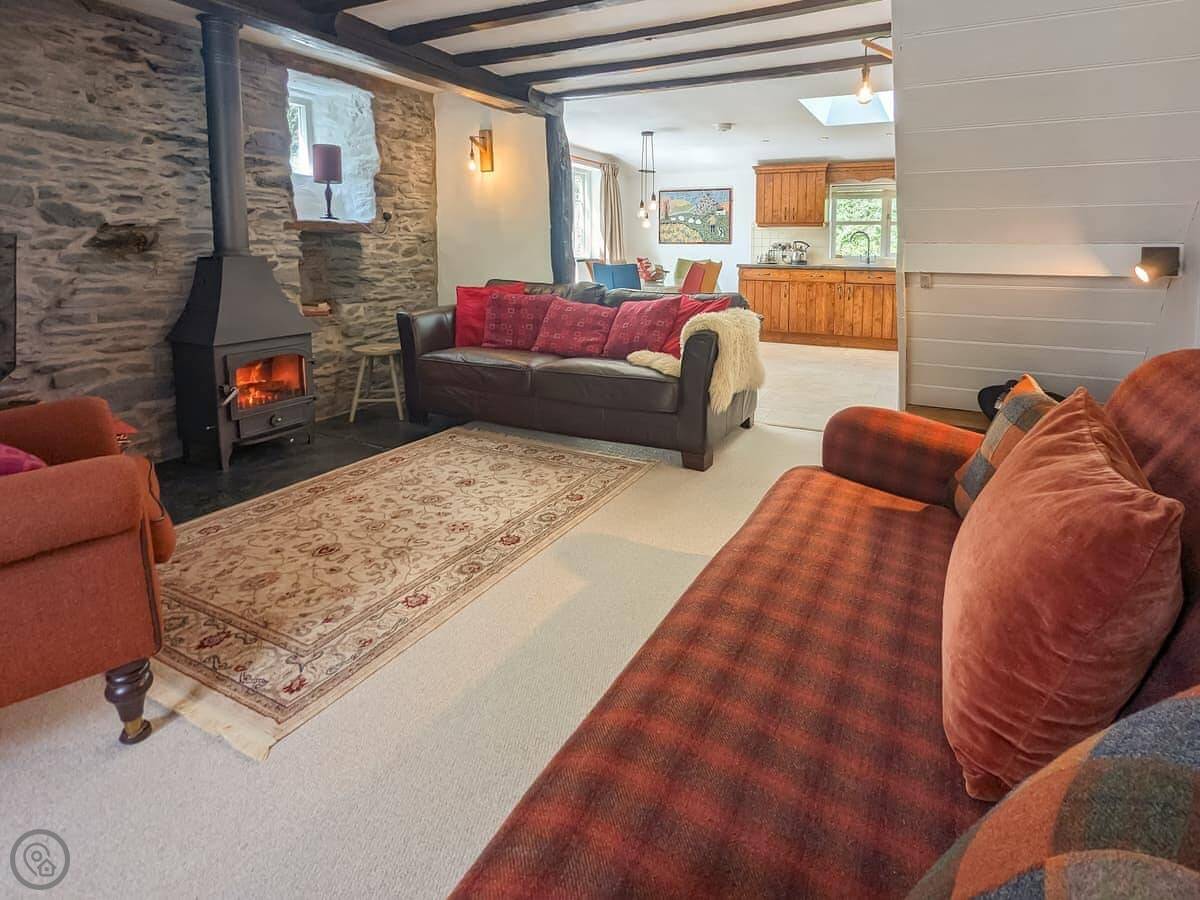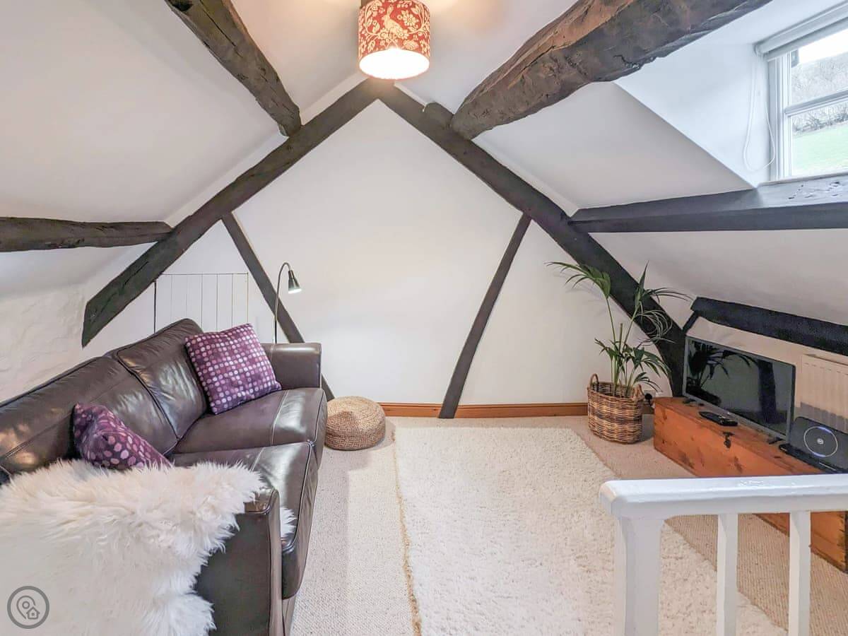 It sleeps six. Three bedrooms, two bathrooms. It's got a 5 Star rating, which means it's well-equipped and in good nick. The wood burner works well. There's a games room in the outbuilding, which is handy if the weather turns.