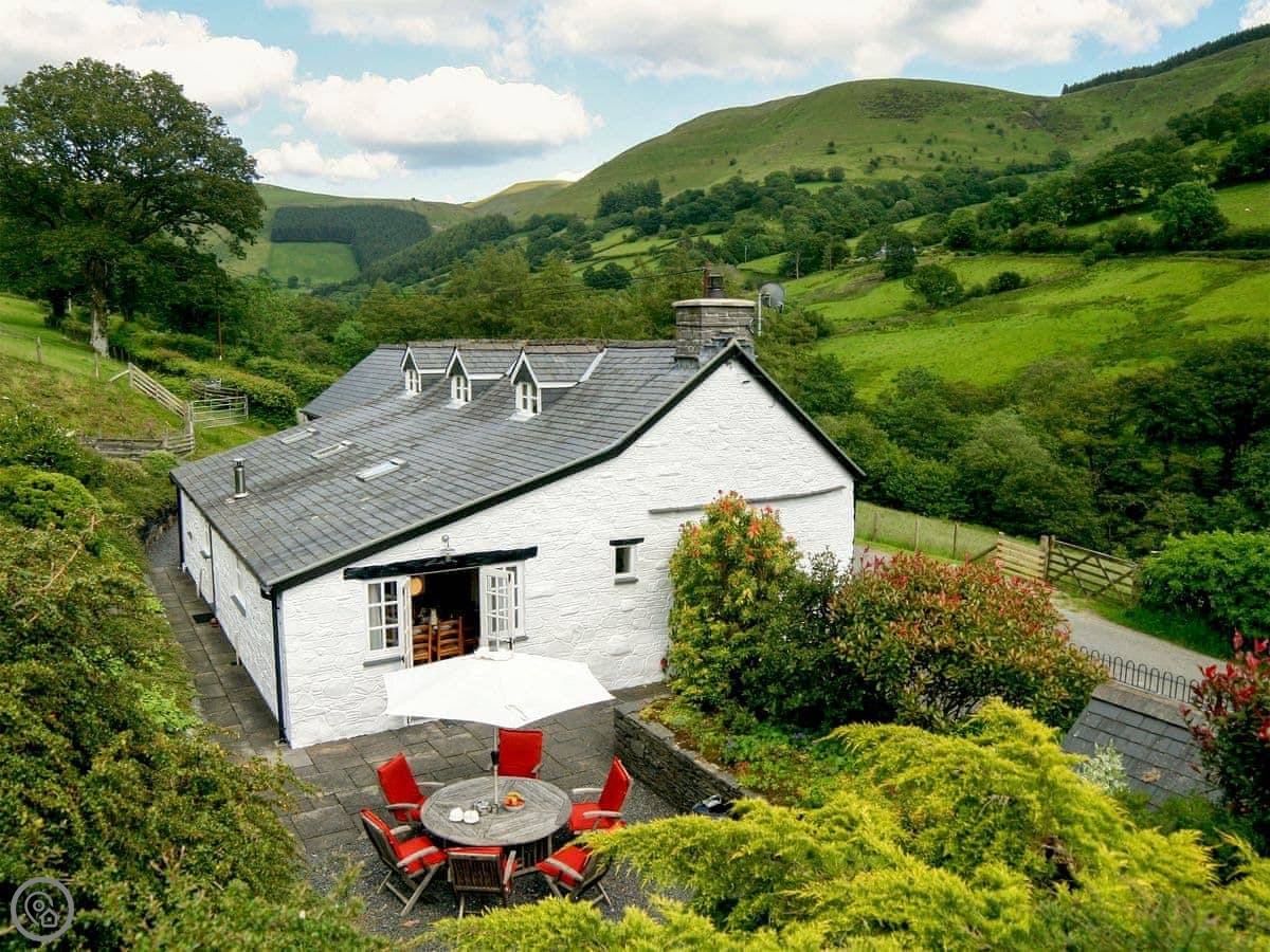 Ty'n Y Ffordd is in Llanymawddwy, in the Snowdonia National Park. It's a detached house, so no one's attached. You get the garden and patio to yourselves. The view is just fields and hills.