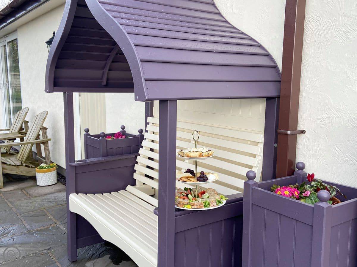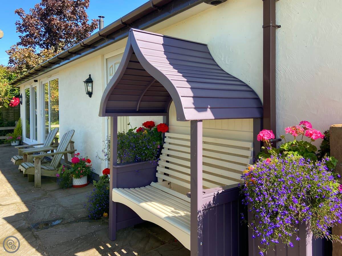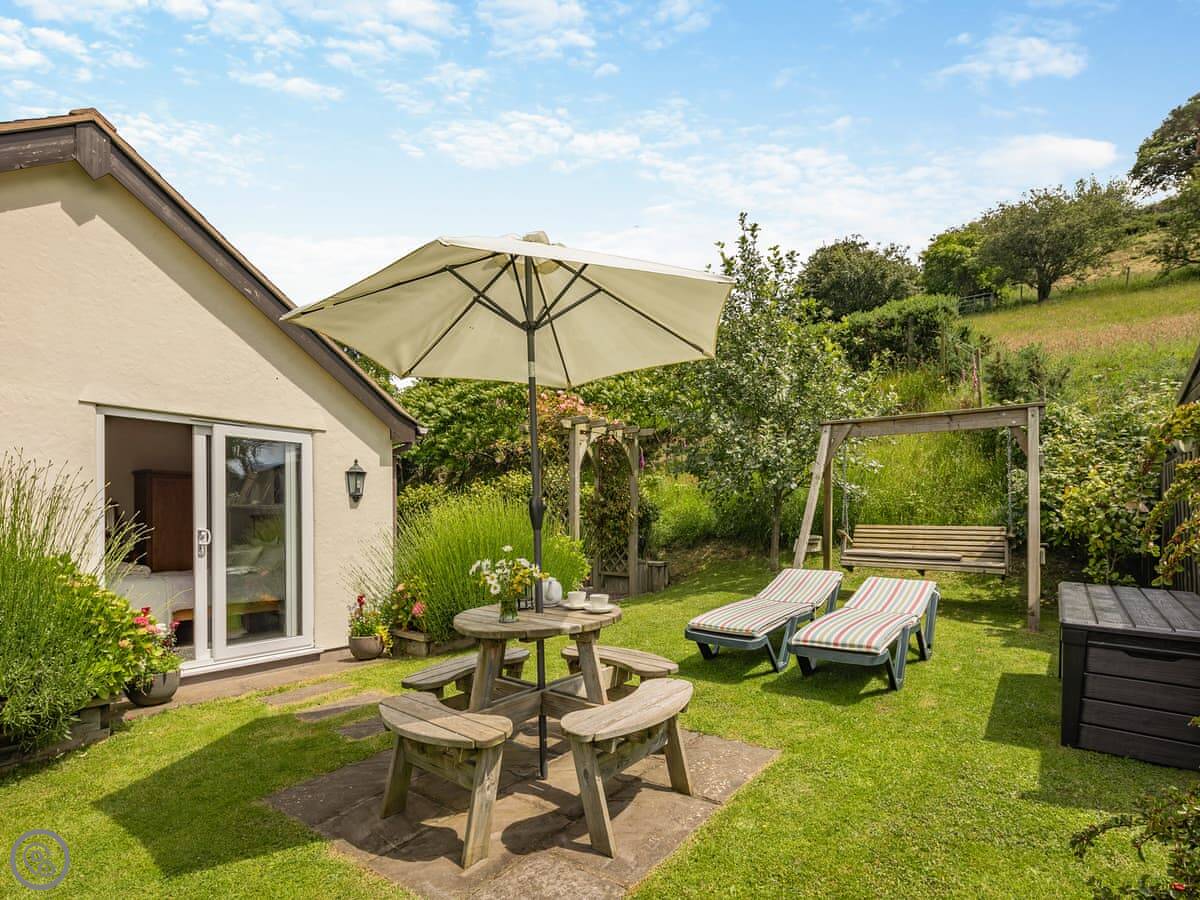 The garden has a couple of seating areas, a barbecue, and a herb bed you can use. There's about an acre of meadow grass and wildflowers around it. The owners keep bees nearby, hence the name.