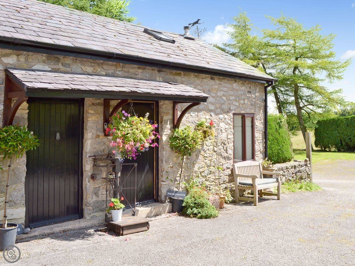 Honeysuckle Cottage is here on our farm in Nercwys. It's a semi-detached stone cottage, one of a few old farm buildings we converted. It's in the middle of our garden, so you get the views and the space.
