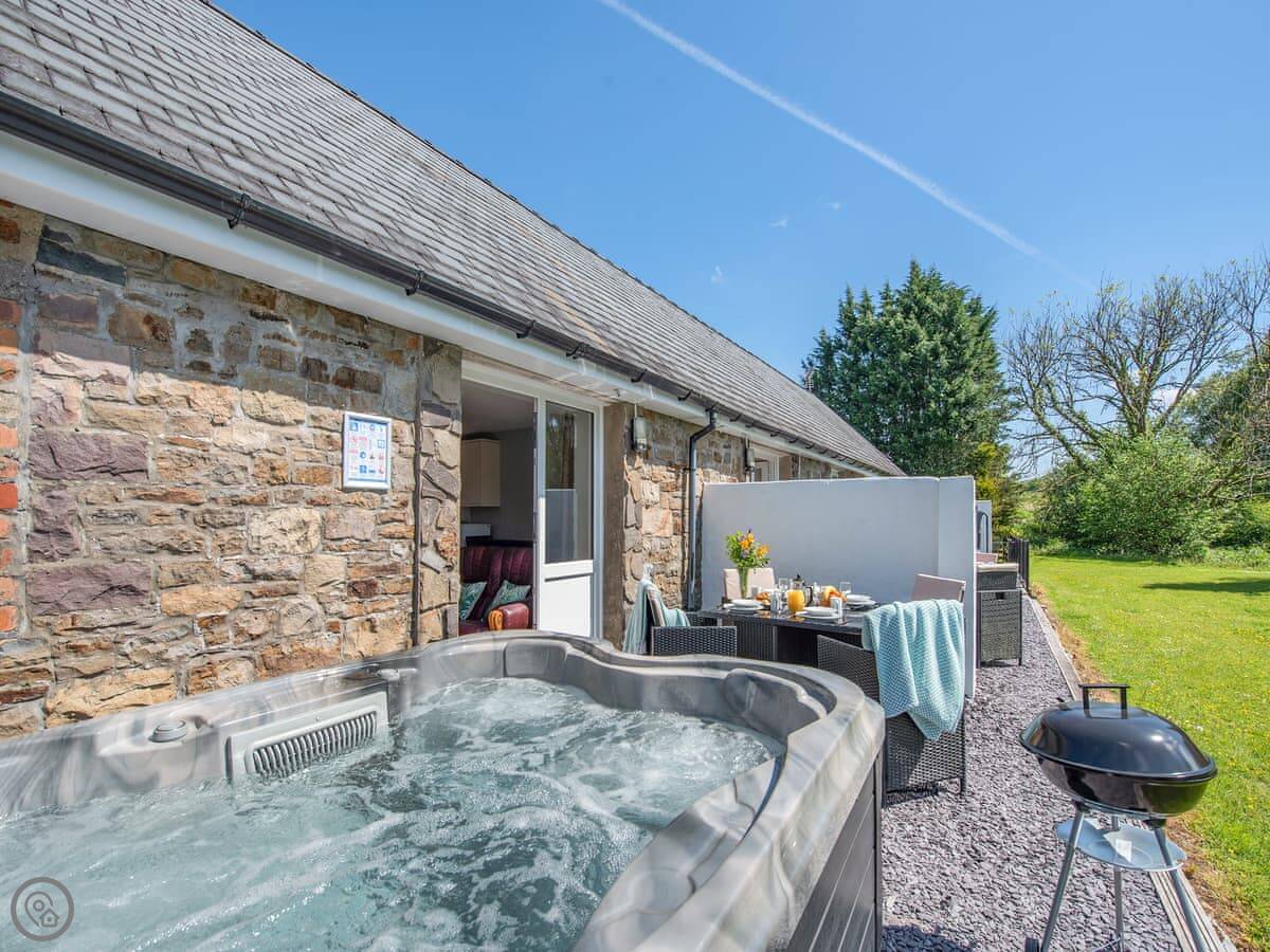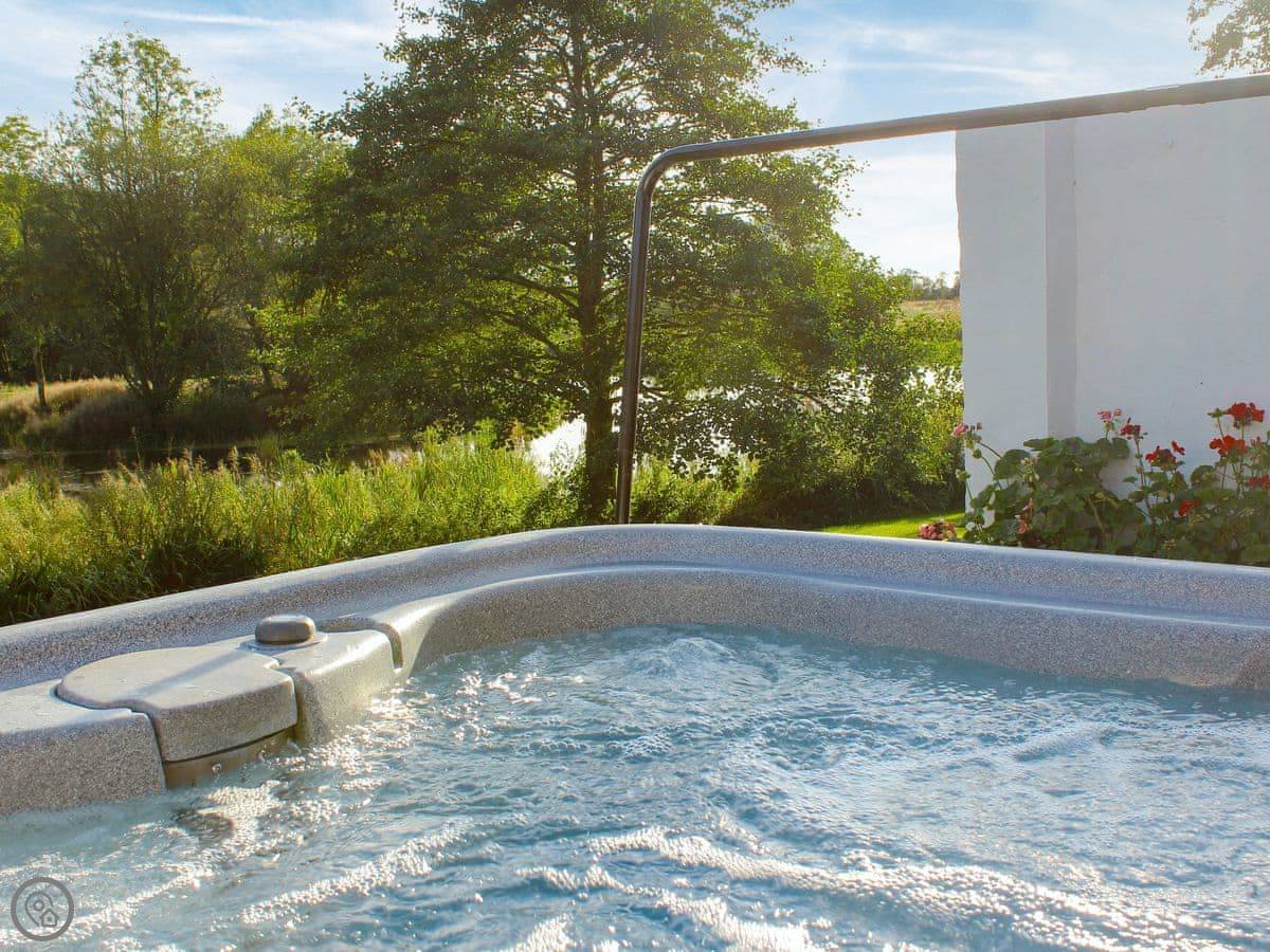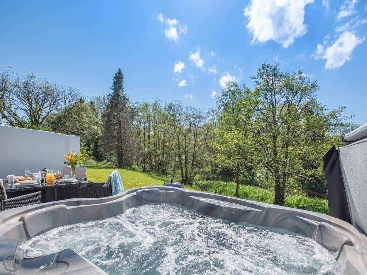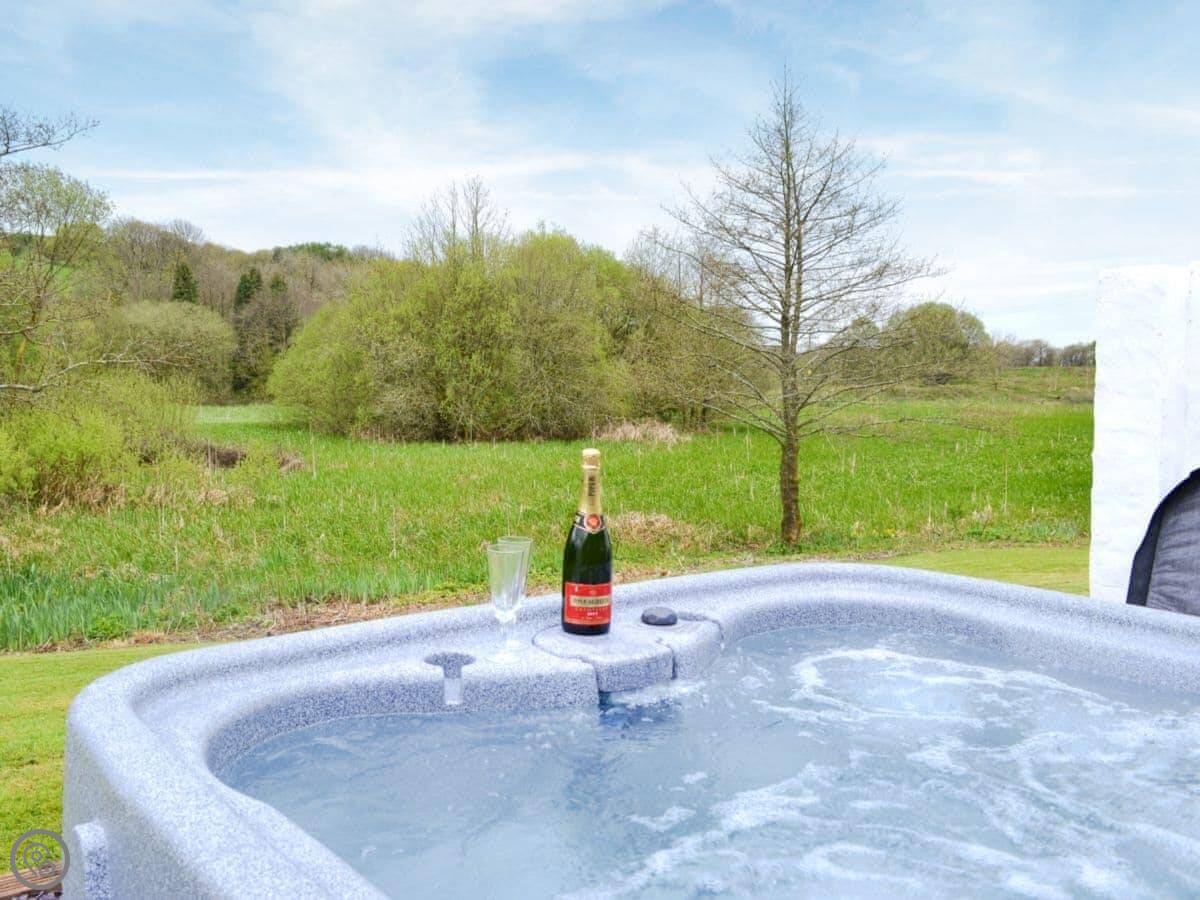 The main thing people like is the private hot tub in the garden. It's a good spot for it, looking out over the fields.