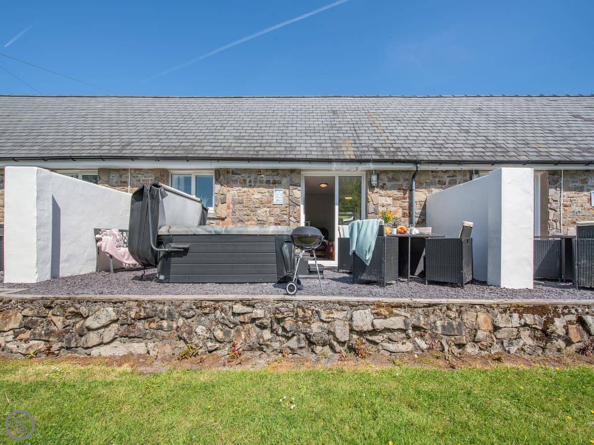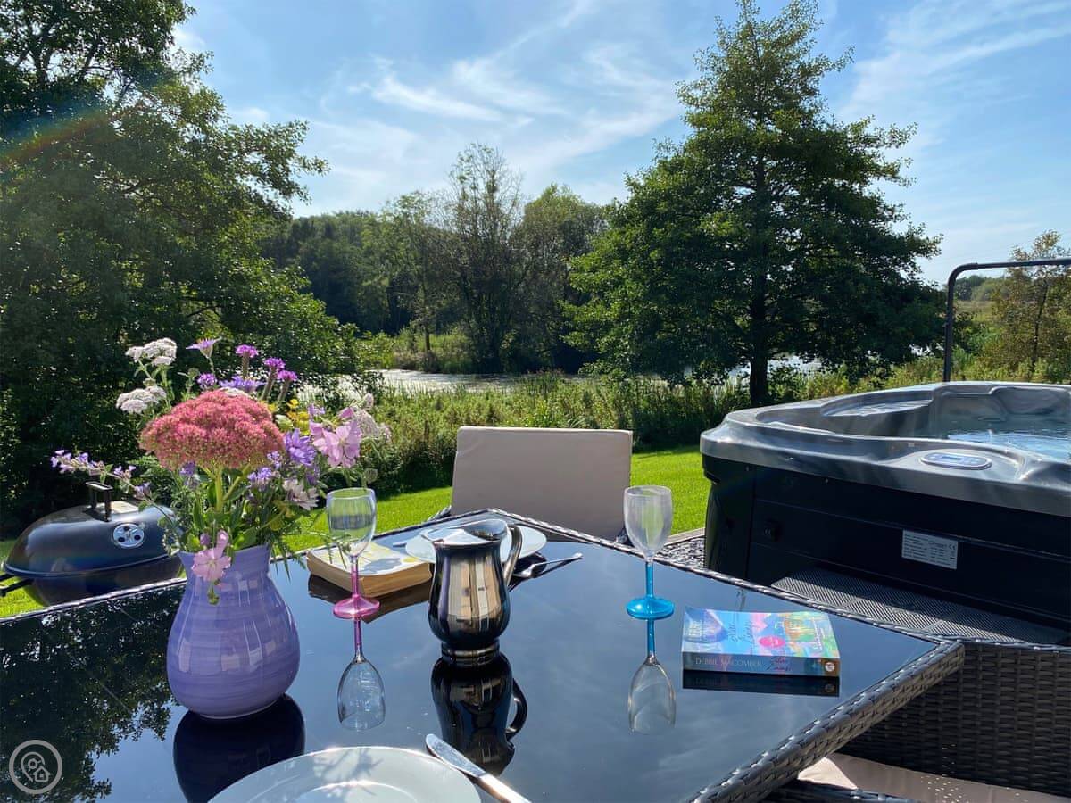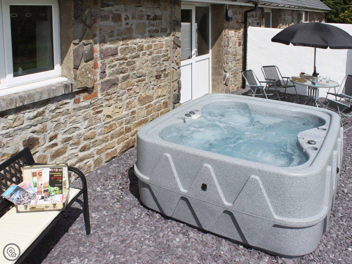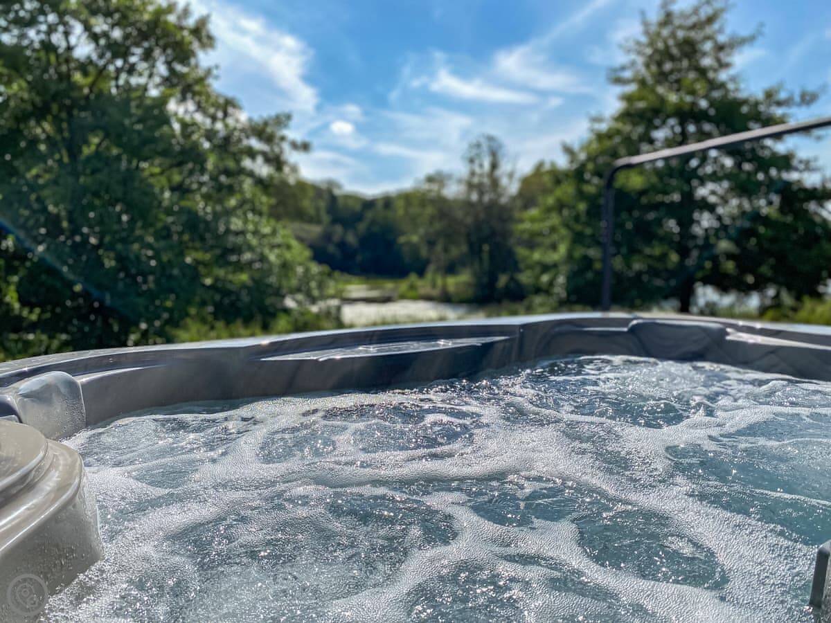The main thing people like is the private hot tub in the garden. It's a good spot for it, looking out over the fields.