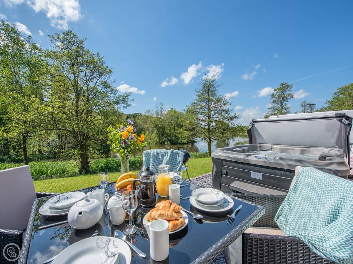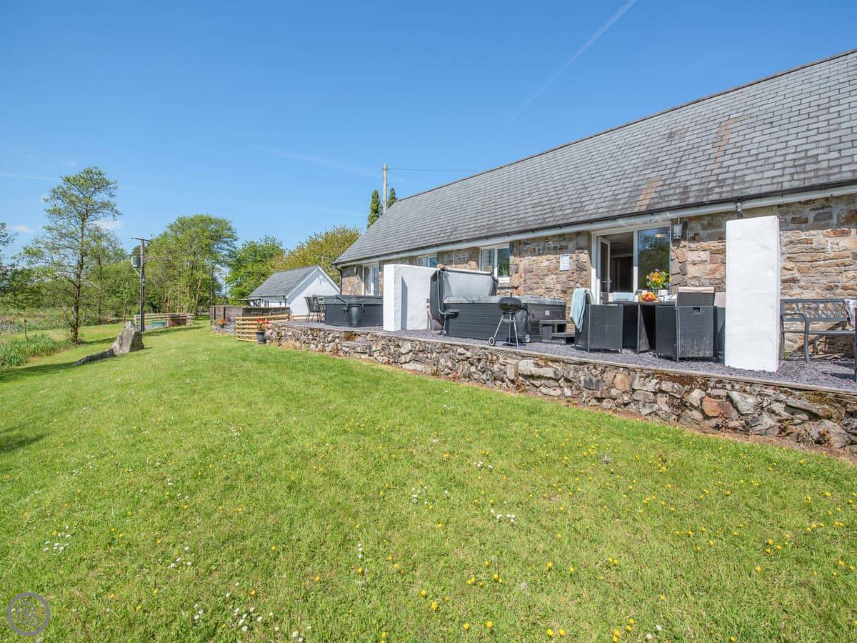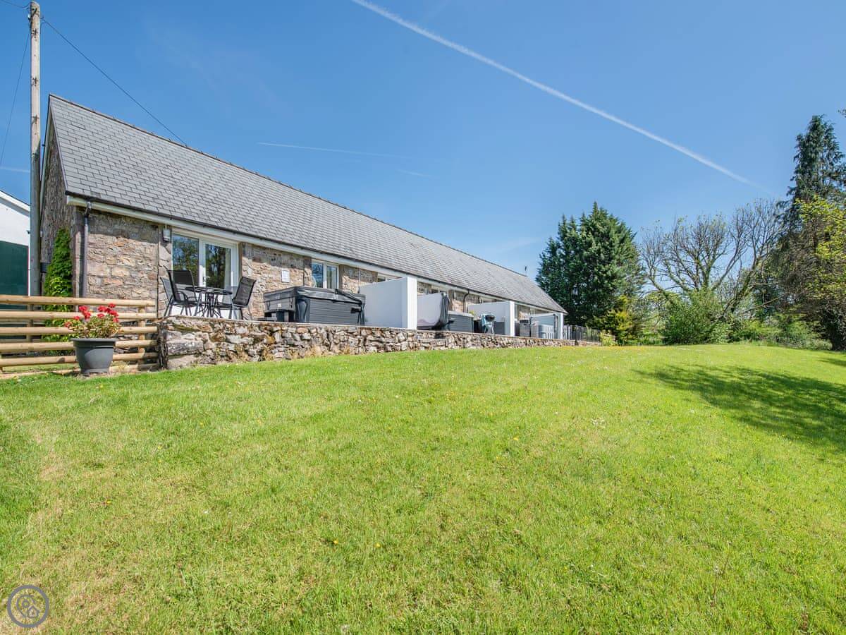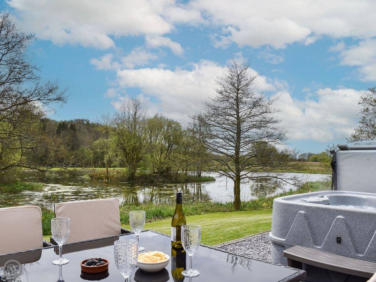 The main thing people like is the private hot tub in the garden. It's a good spot for it, looking out over the fields.