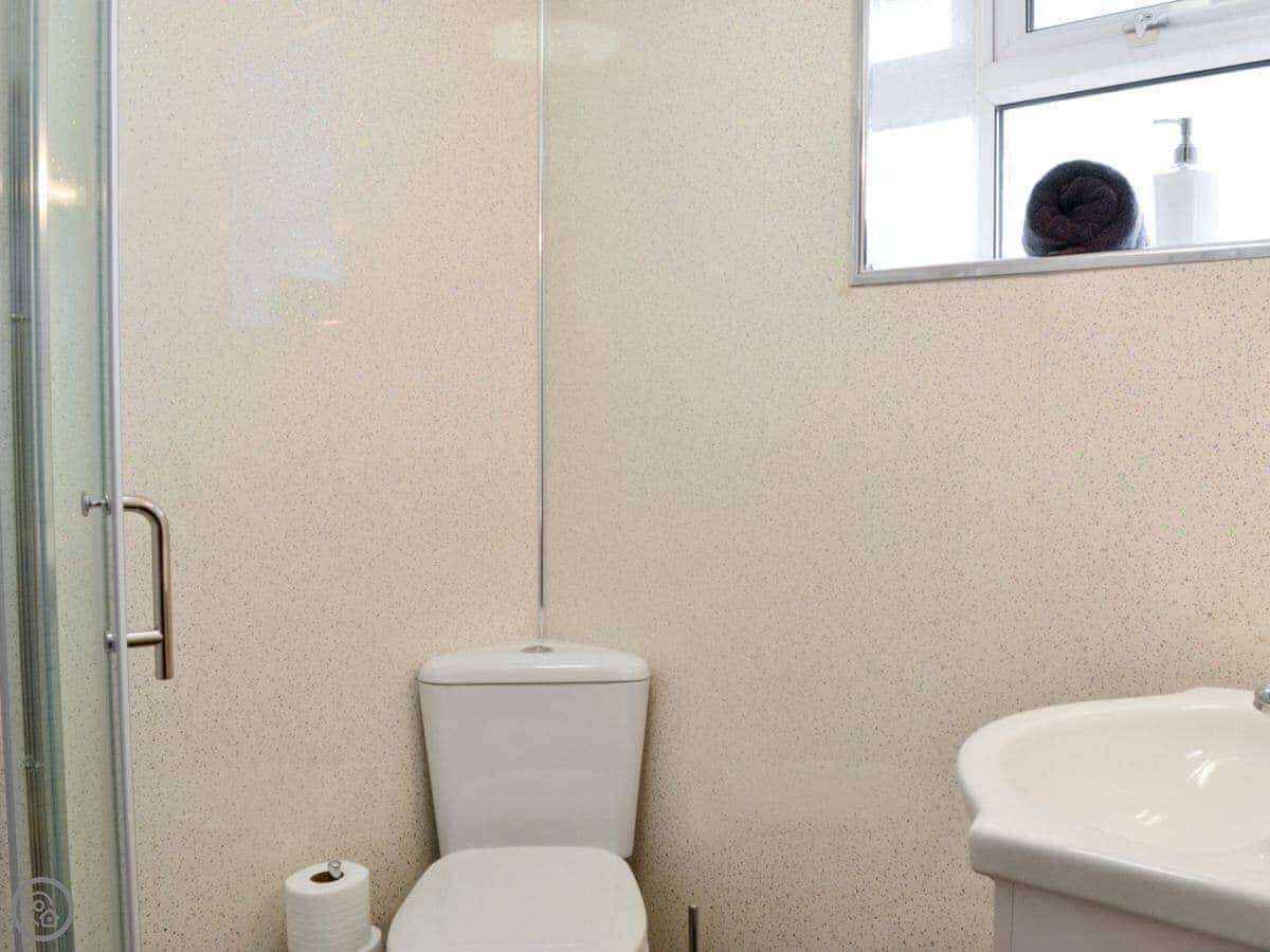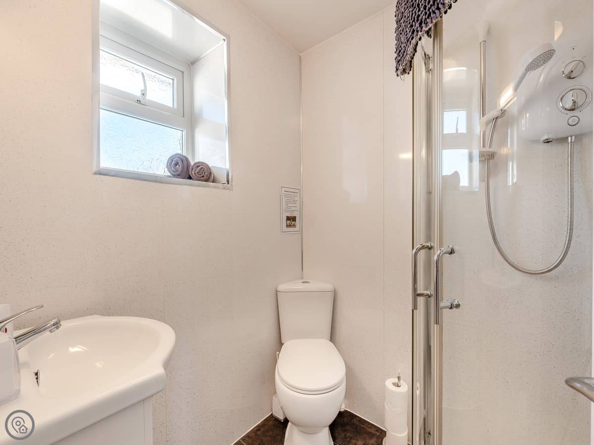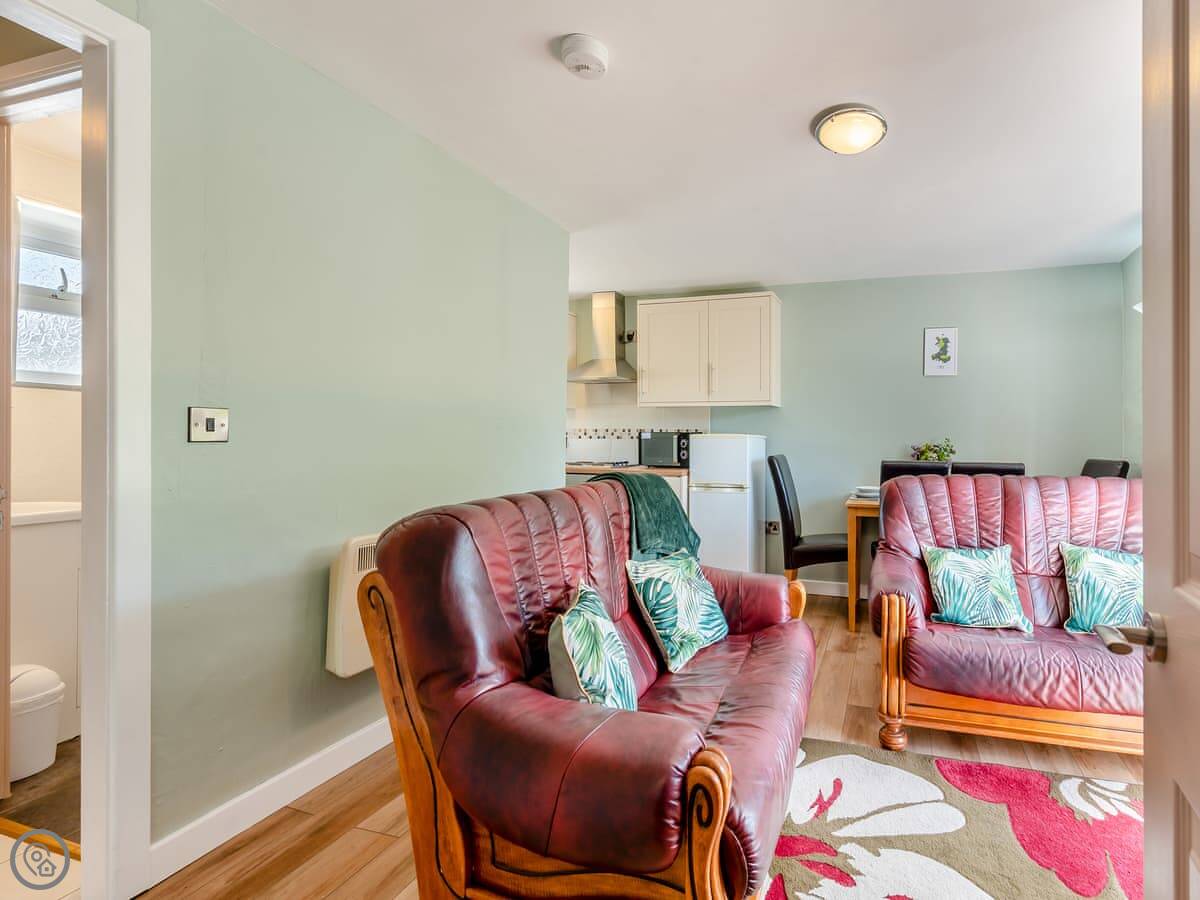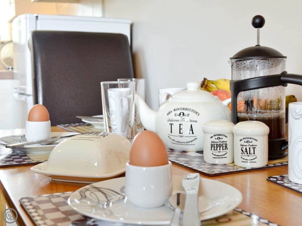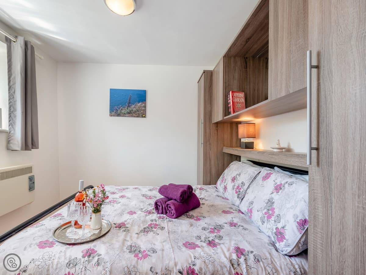 Inside, it's got what you'd need: a washing machine, TV, WiFi. The bedding and towels are included. There's a cot and highchair if you need them. Parking is right outside the cottage.