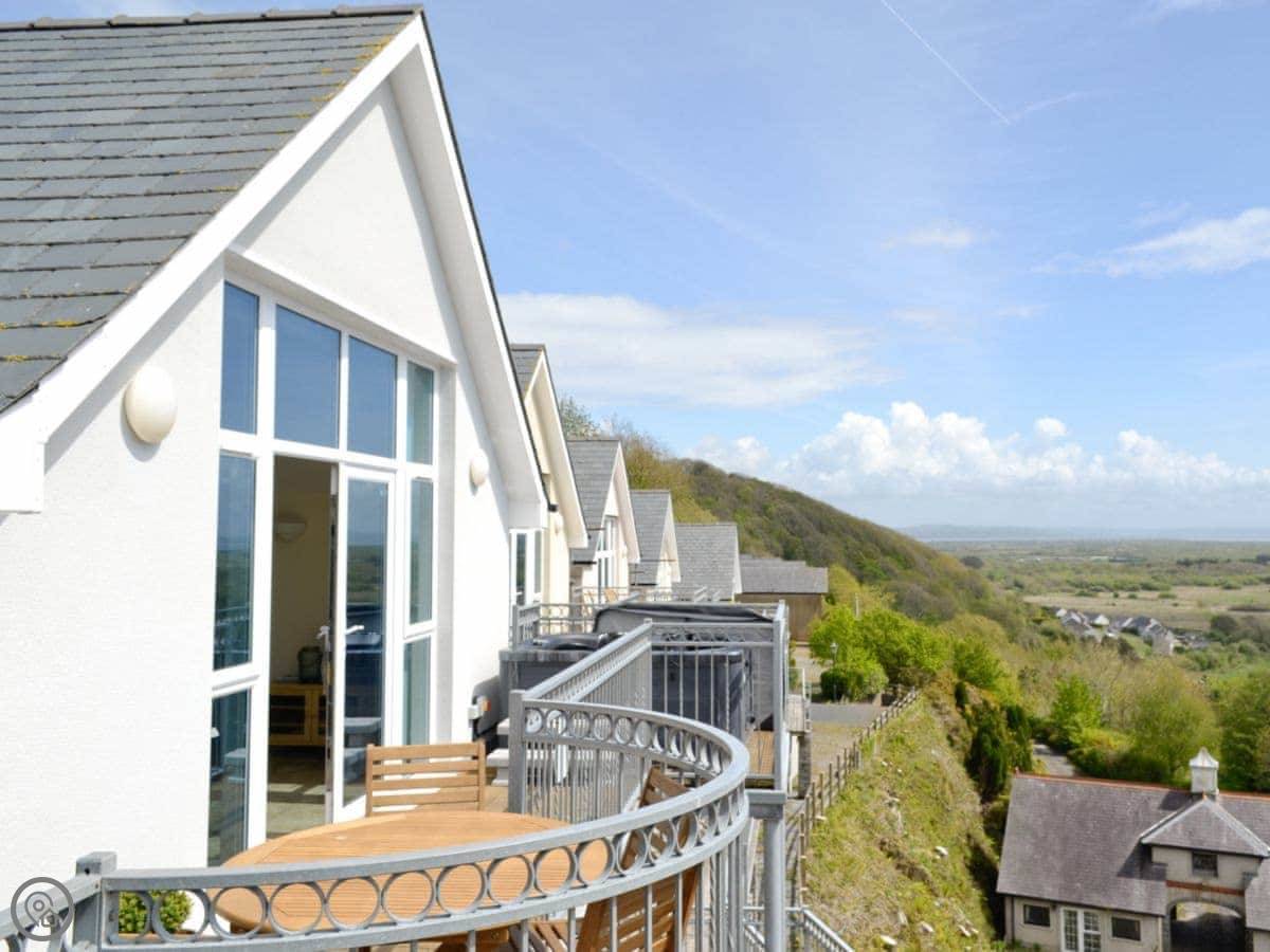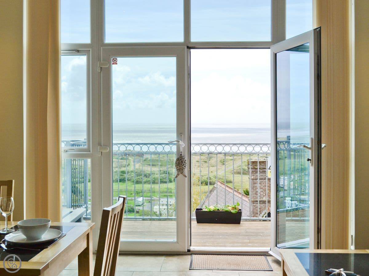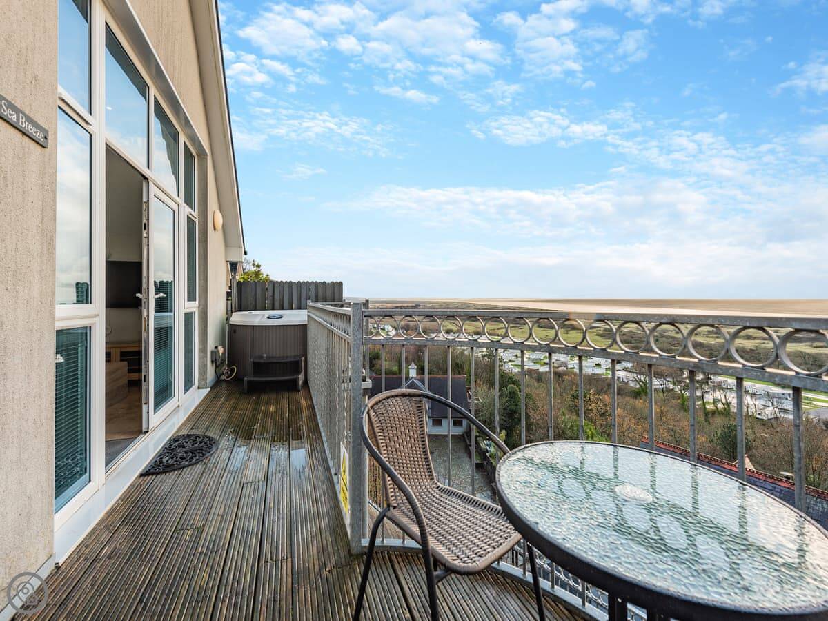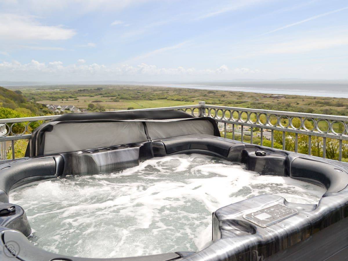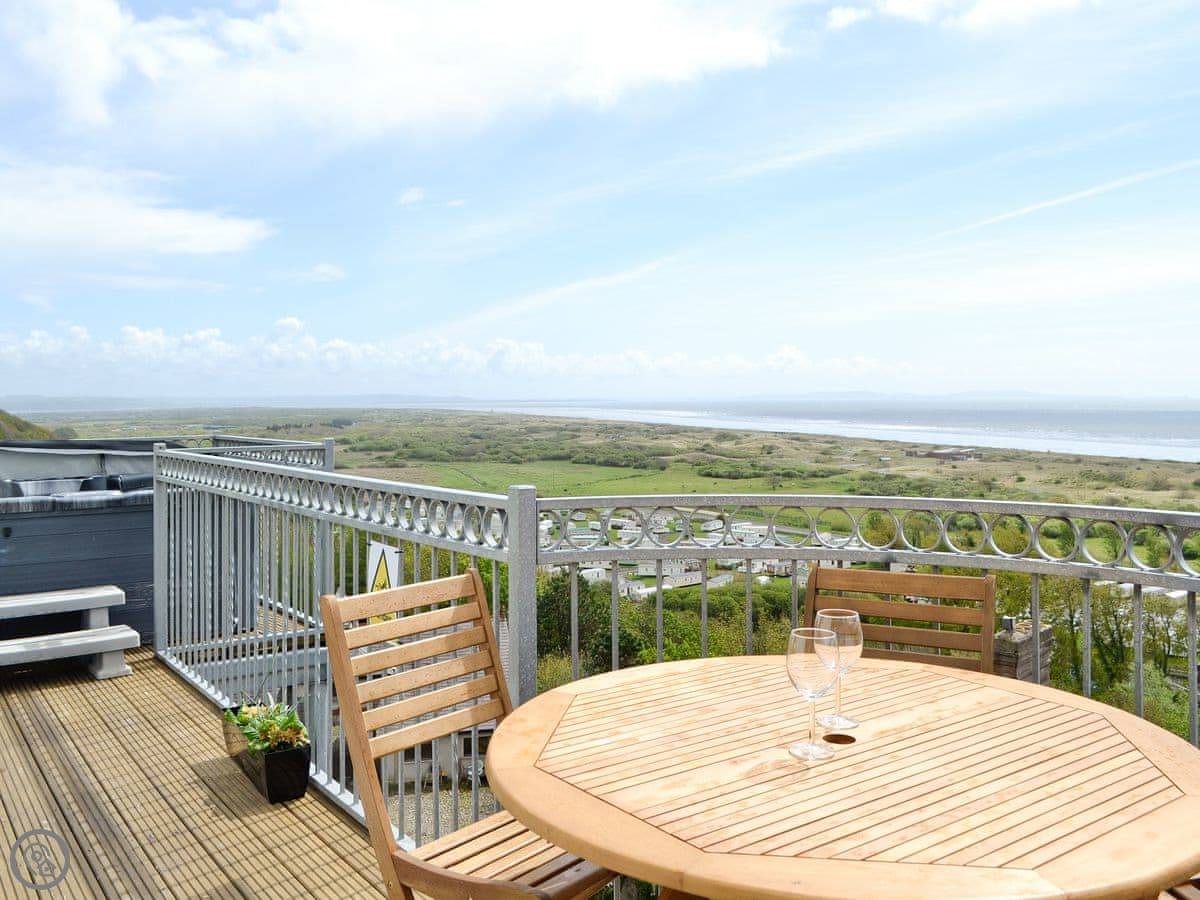 The terrace has a hot tub for four, and a table and chairs. You look right down onto the sands from there.