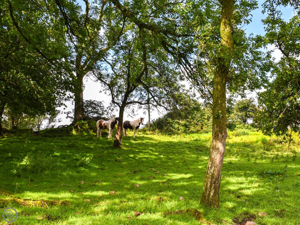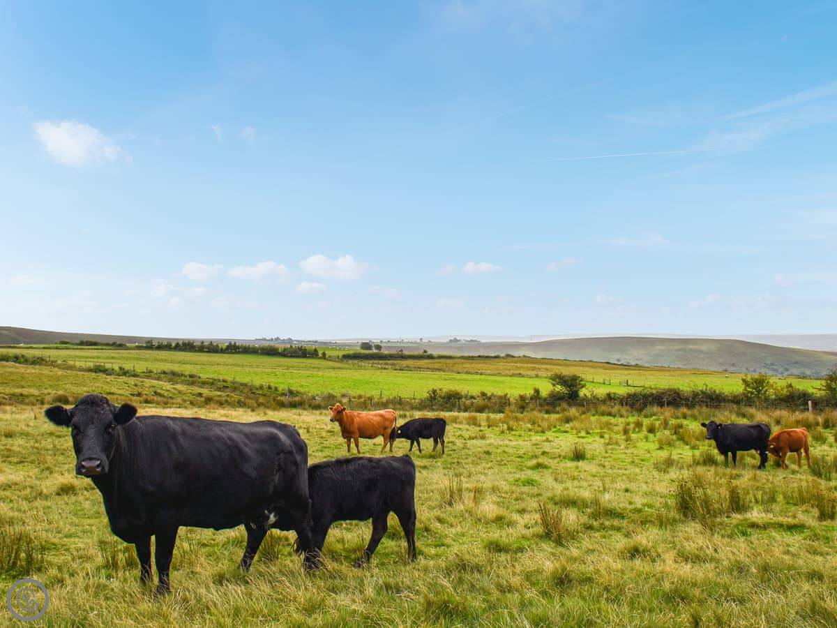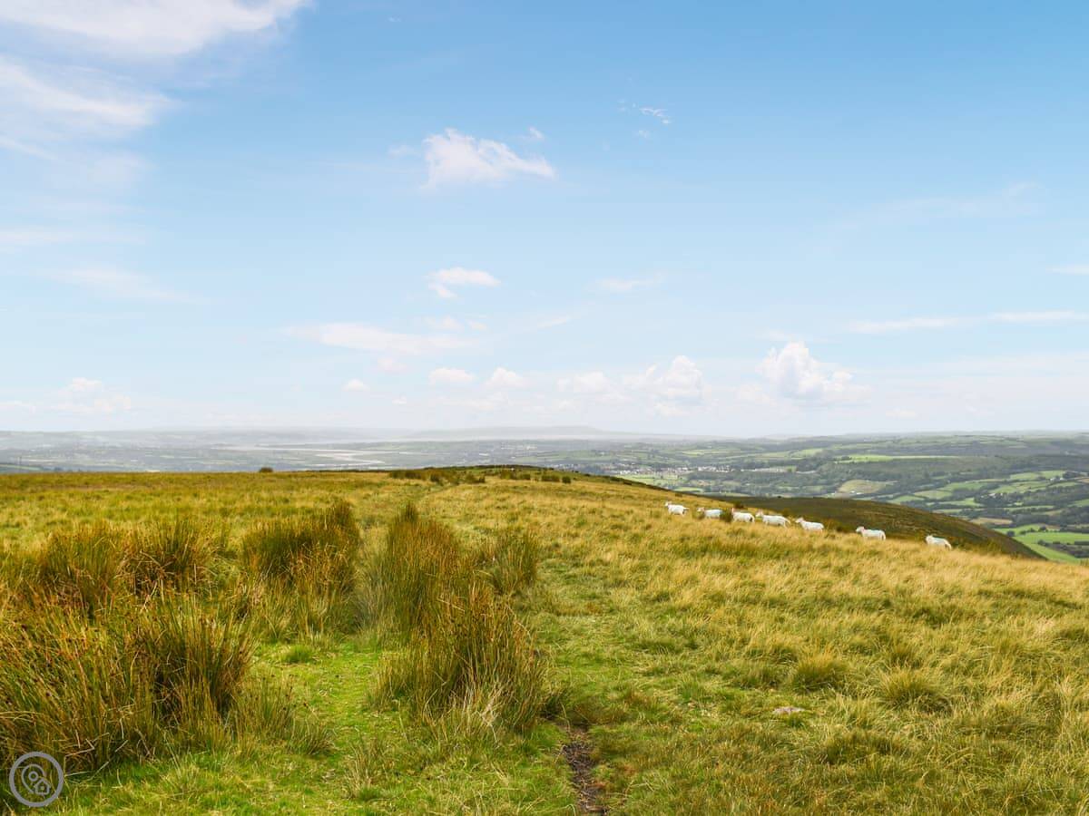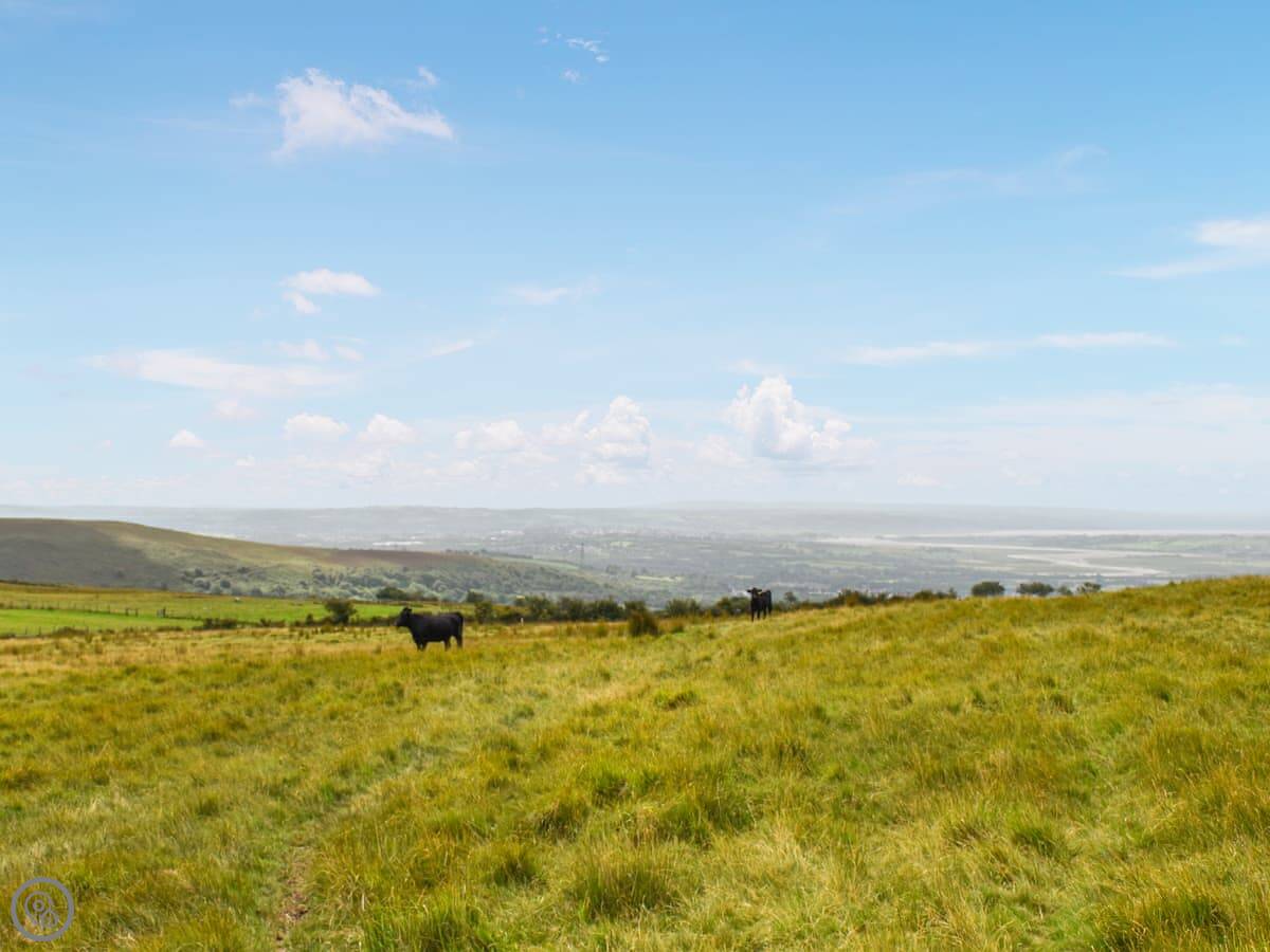 You're right in the middle of it here, with the hills around you. The lane from the gate is a single track. It's good for walking straight out. For a bigger day out, the Brecon Beacons are about 45 minutes north. The other way, the Gower coast is probably half an hour or so for the beaches.