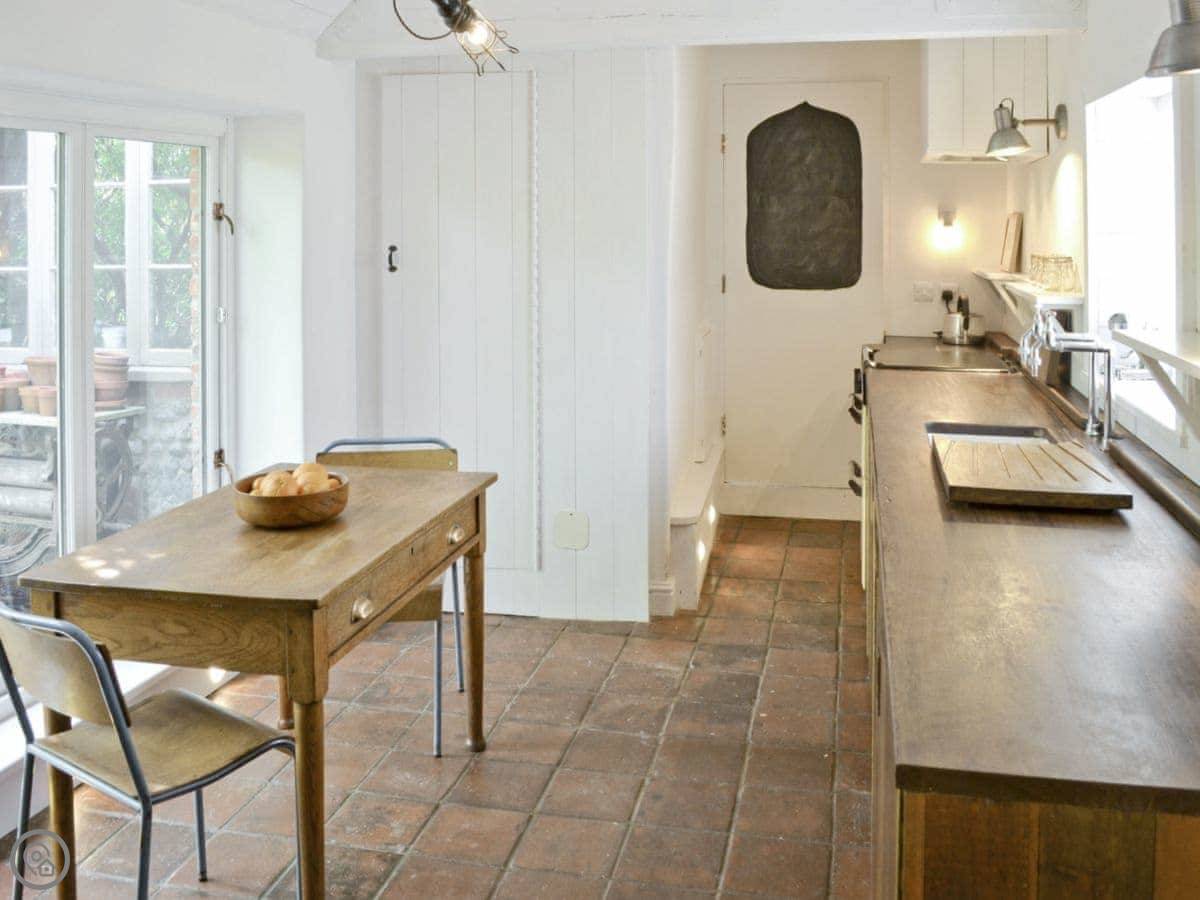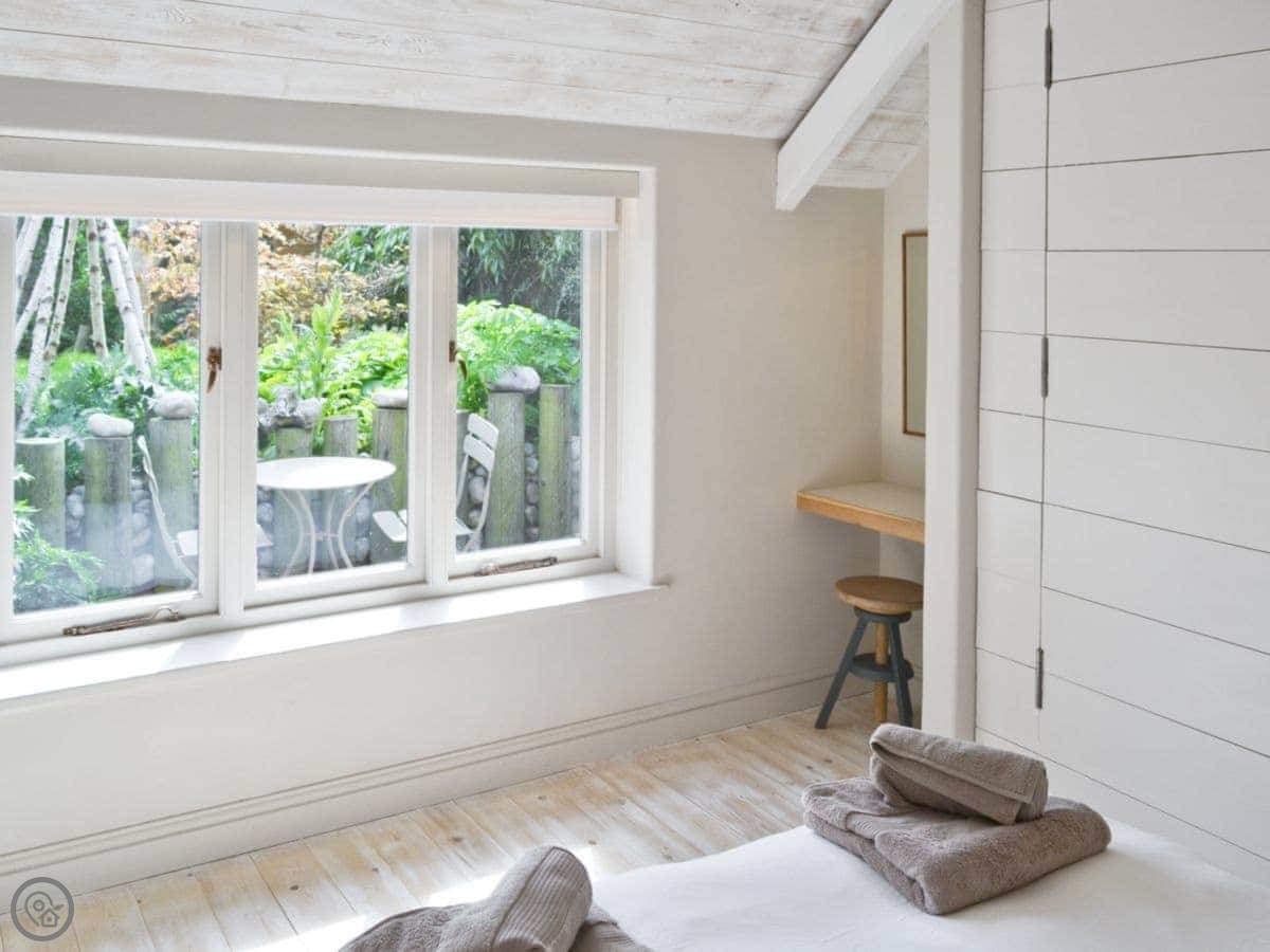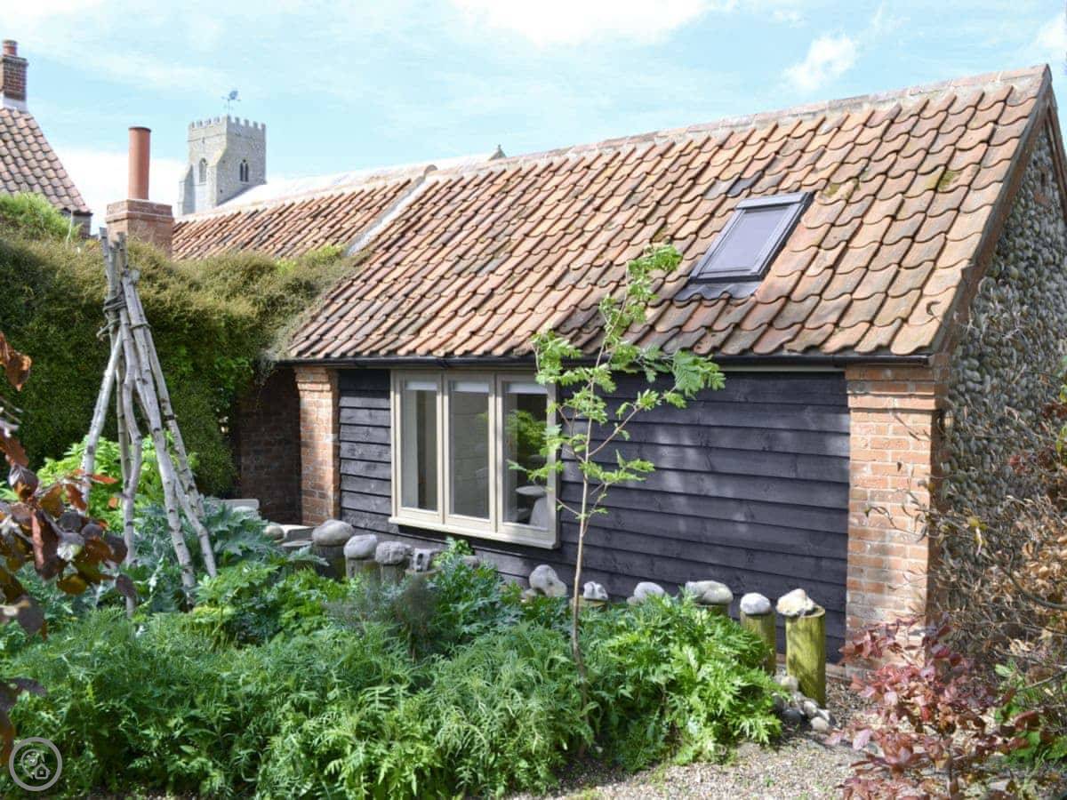 You've got a small enclosed garden out the back. It's walled, so it's private. You can see the heath and the church from there.
