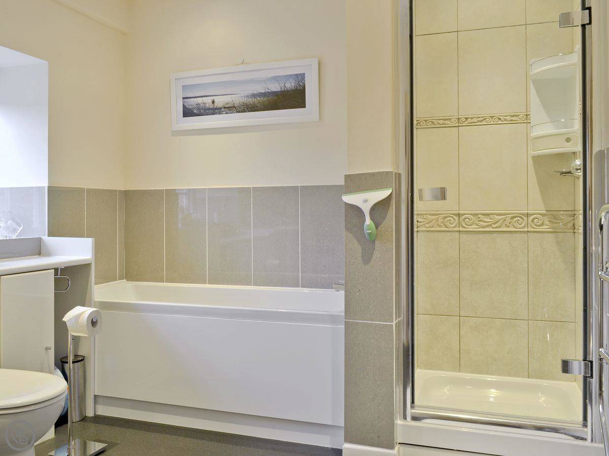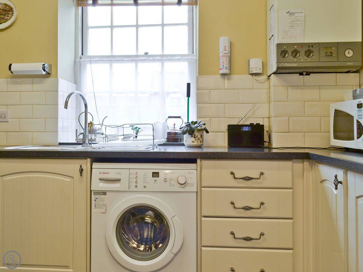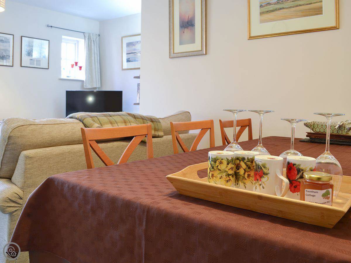 Inside, there's a washing machine, dishwasher, TV, and WiFi. Bedding and towels are included. We can provide a cot and highchair if you need them. There's a stairgate at the bottom of the stairs. The stairs themselves are fine, but they are cottage stairs, so they turn a corner and are a bit steeper at the top. Parking is on site for one car. One well-behaved dog is welcome.