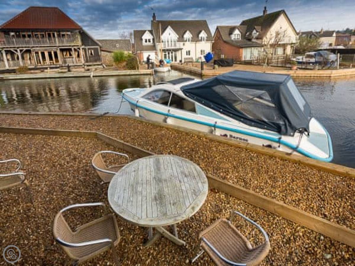 The lodge comes with a day boat for up to eight people, free of charge for most of the year. You moor it right outside. There's a charge for it during Whitsun and the summer holidays, but it's a reduced rate from the owner. You'll need to sort that with them directly. If you've got a fishing licence, you can fish from the owner's stretch of riverbank.