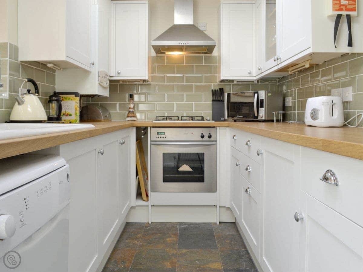 Facilities: there's parking for one car on the gravel drive. Washing machine, dishwasher, WiFi, TV. Bedding and towels are included. There's a cot and highchair. You can store bikes. No pets.