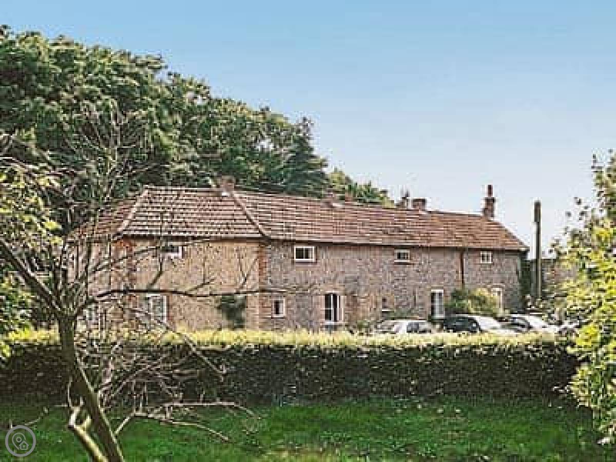 Pebble Cottage is in Holt. It's one of the brick and flint Hill Cottages, so it's on top of the rise. It's attached to the next one. You get views over the fields from the front.