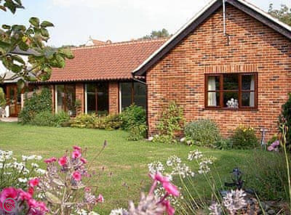 This is Riverside Cottage in Costessey. It's a detached bungalow, so everything's on one level. Sleeps four in two bedrooms. There's one bathroom with a wet room shower.