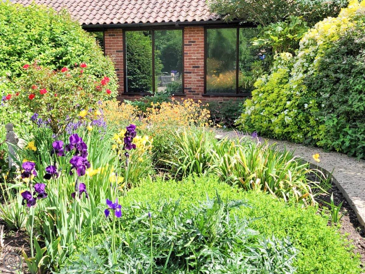 The garden is enclosed. French doors open onto it. There's a path down to the riverbank at the bottom. You've got your own bit of river frontage there. We keep a three-man Canadian canoe there for guests to use. It's a quiet bit of the River Wensum. You might see the odd fisherman go by in a rowing boat, that's about it.