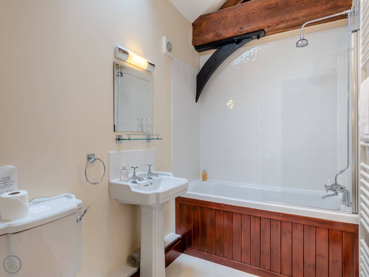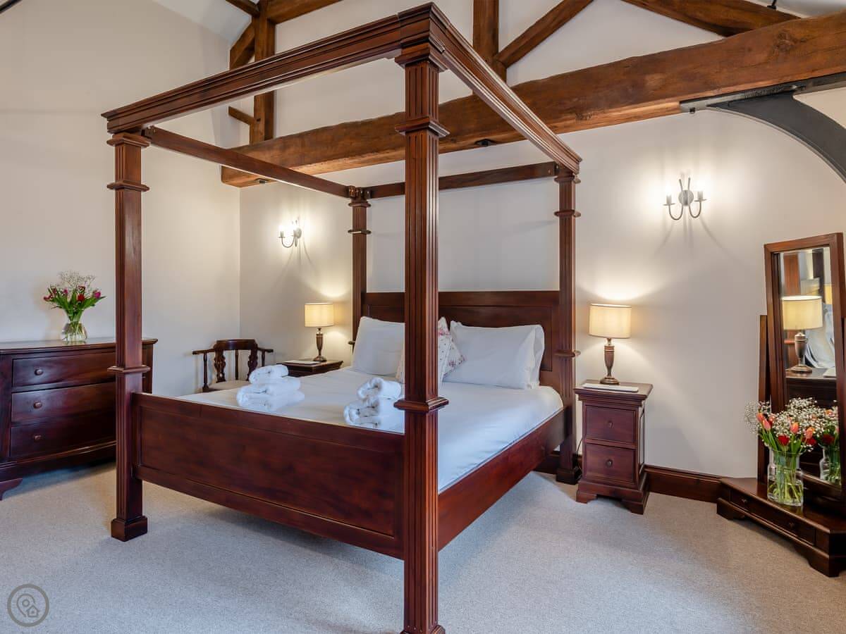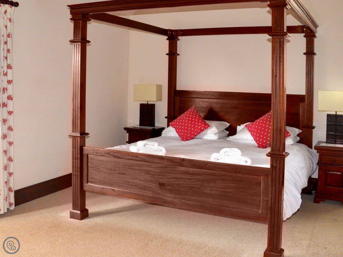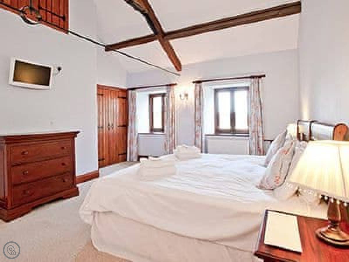 Inside, it's got the beams and stone floors you'd expect. Everything's included: bedding, towels, WiFi, parking. We allow up to two dogs. It's a 4 Star place, so it's well equipped and comfortable.