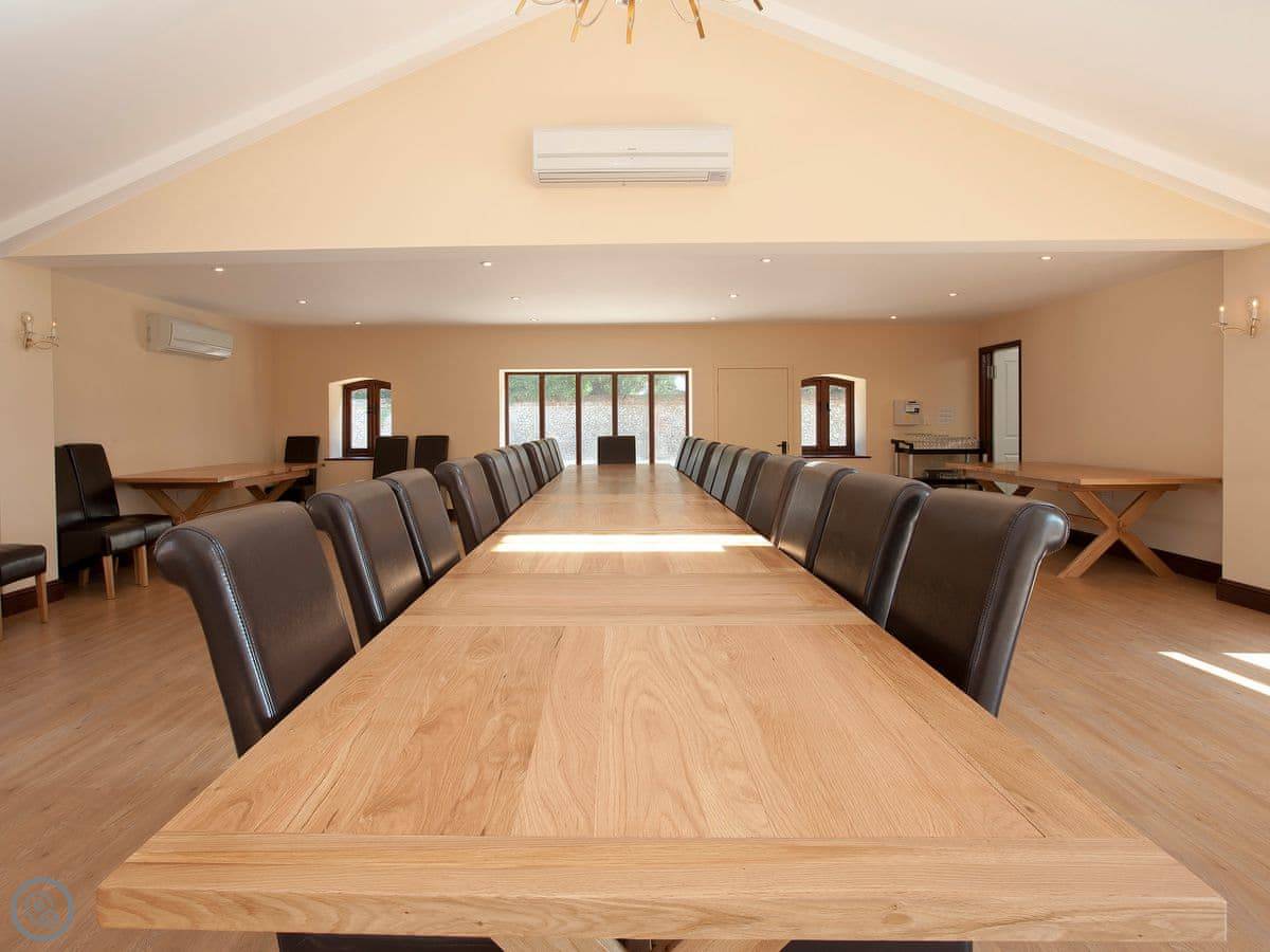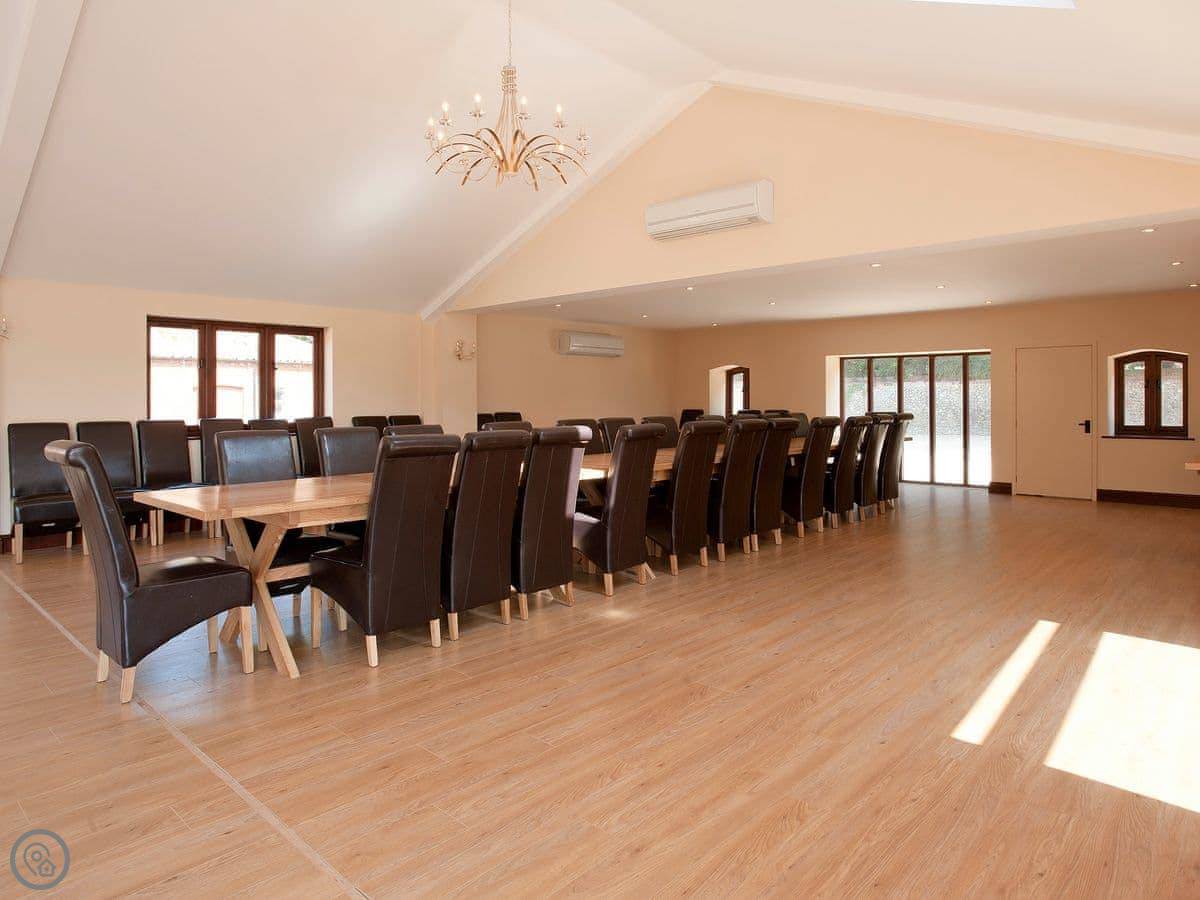 There's a function hall on the farm you can sometimes book if you need a bigger space, but you have to arrange that with us directly. On site, there's also a games room and a small gym in one of the outbuildings.