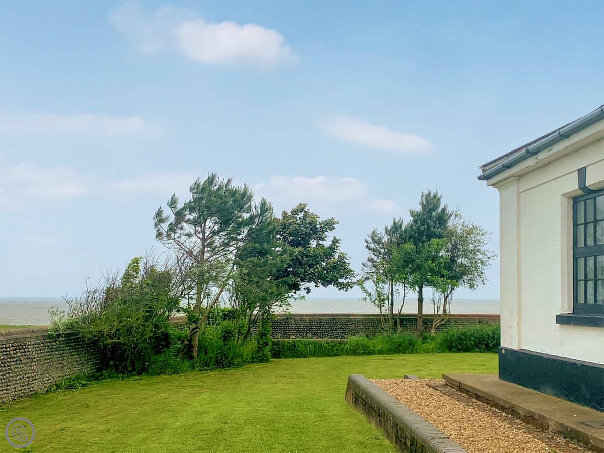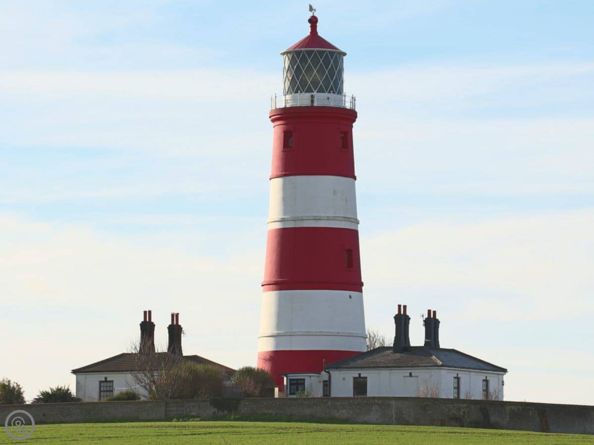 Lighthouse Cottage is in Happisburgh. It's an old lighthouse keeper's cottage, built in 1791. It's right next to the working lighthouse, which you can hear sometimes. The views are good, mostly sea out the front and fields out the back.