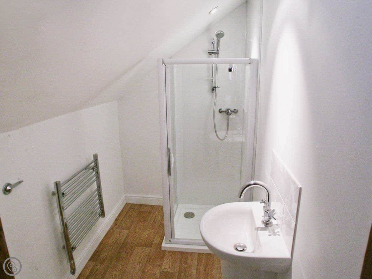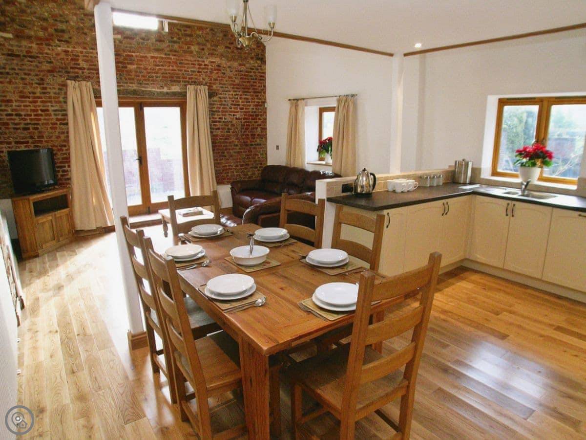 Inside, it's open plan. There's a washing machine, dishwasher, WiFi, and a TV. Bedding and towels are included. We can put out a cot and a highchair if you need them. No pets, sorry.