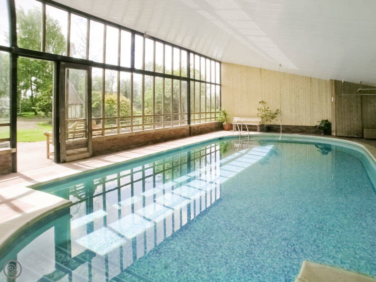 This delightful detached holiday home is a fine example of a Suffolk longhouse dating back to 1420 with carved ceiling beams and oak floor boards. The indoor heated swimming pool is private and for guests exclusive use . Set in its own large area of garden with magnificent views over open countryside, the spacious beamed farmhouse, which includes a wood-burning stove in the living room, is the perfect location for a family holiday, a celebration break or a get-together with friends. The property is beautifully secluded and set on a working farm with livestock. Three acres of trout lakes nearby offering fly fishing and abundant wildlife.