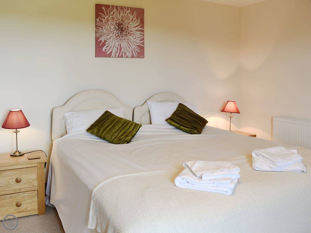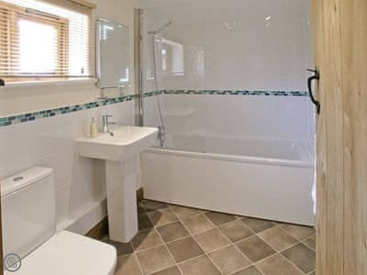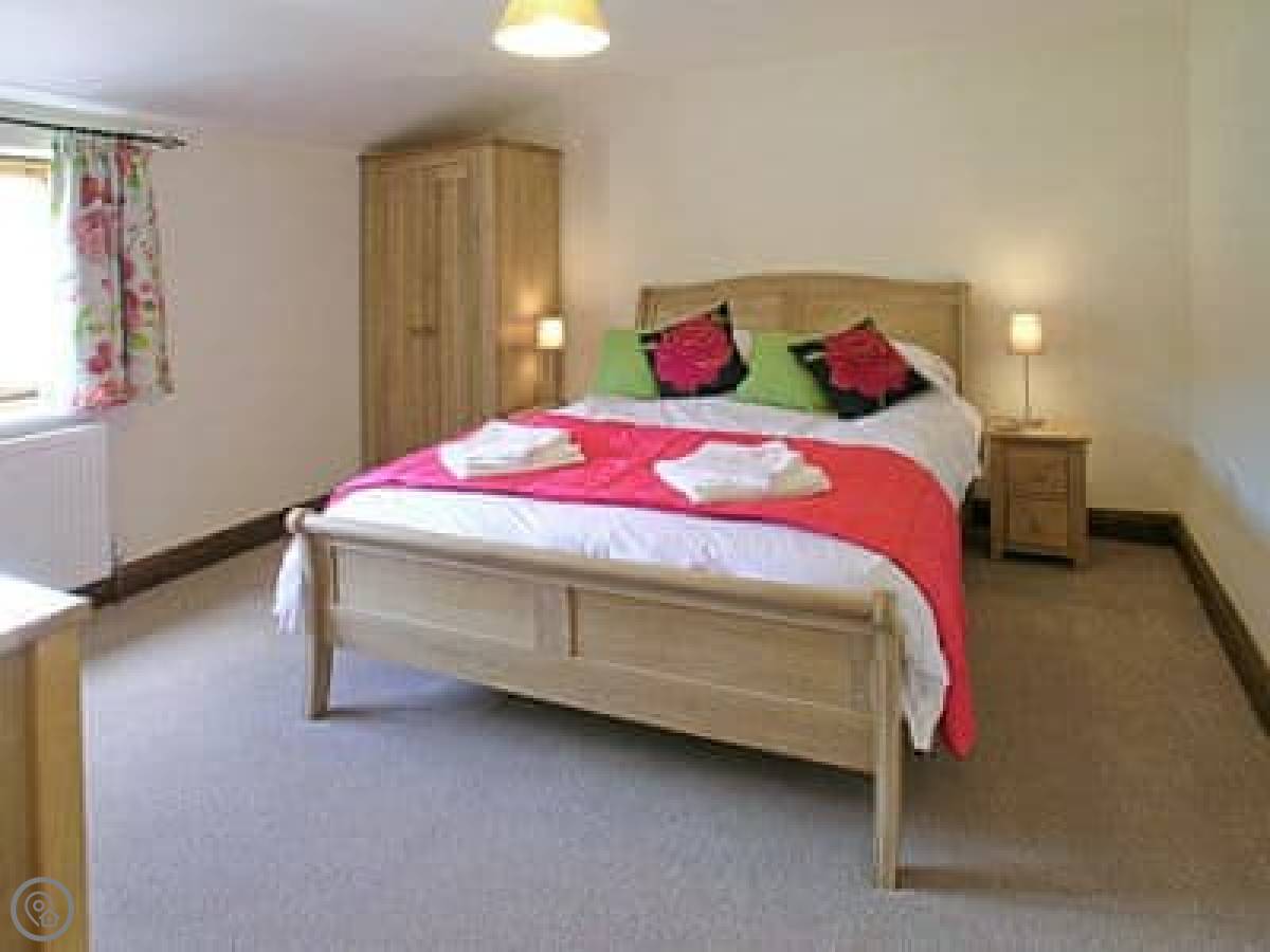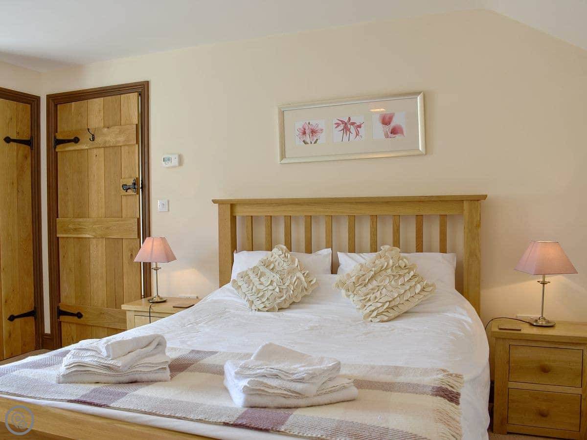 The cottage sleeps eight. There are four bedrooms and three bathrooms. It's a 5 Star rating. It's nice, but it's still a converted farm building. The layout is upside down, so the living area is upstairs. That's not a mistake, it's just the design. It means the views from the main room are better.