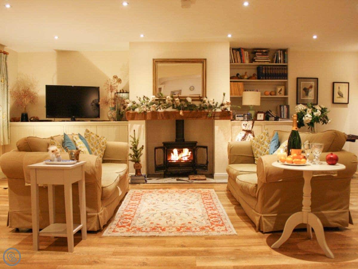 For facilities: there's a wood burner, a dishwasher, washing machine, TV, and WiFi. We provide bedding and towels. There's parking right next to the barn. We can put up a cot and a highchair if you need them, and there's a stairgate at the top.