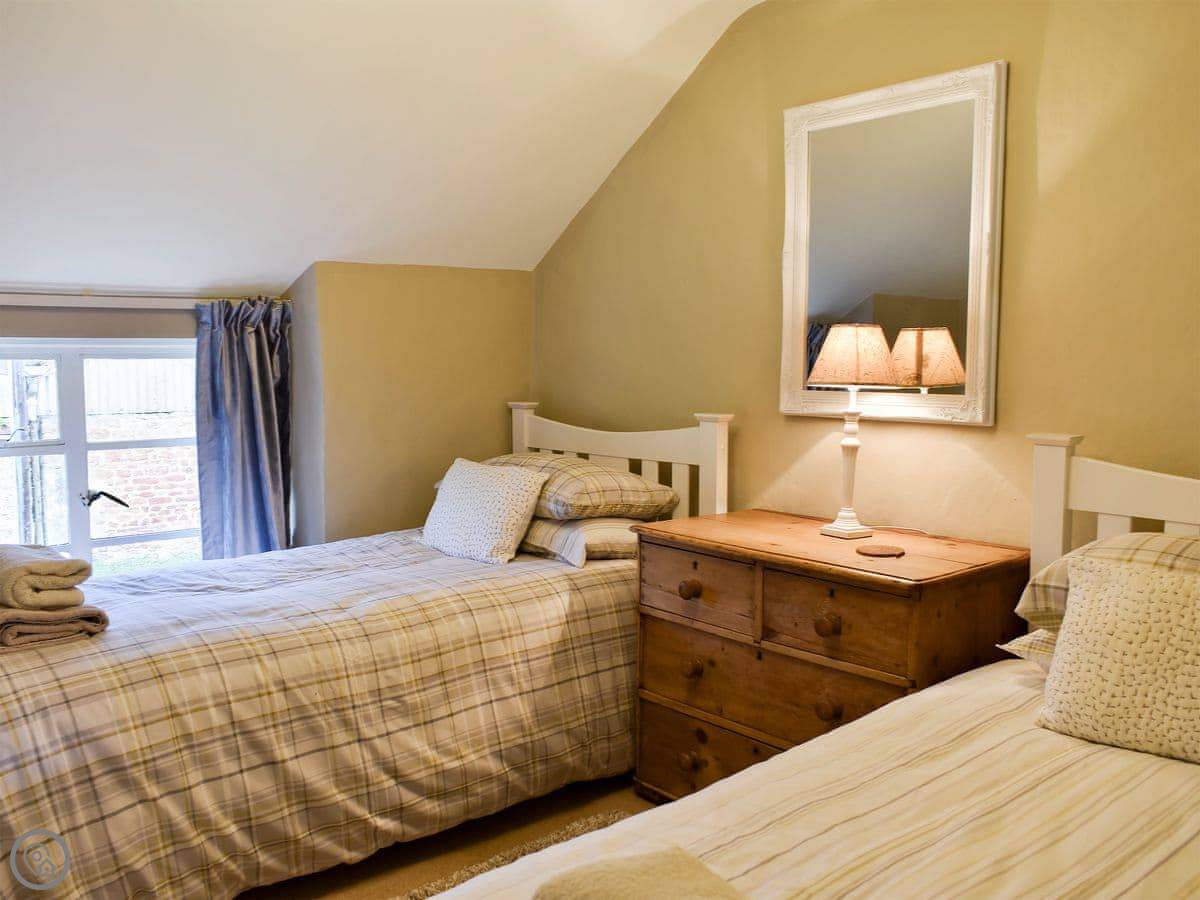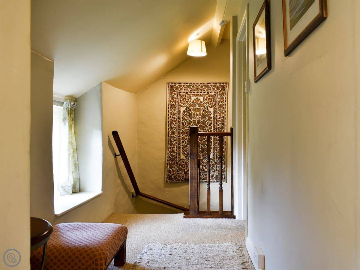 It's got two bedrooms and sleeps four. One bathroom. It's a 4 Star rating, so it's comfortable and has everything you need. The stairs are a typical cottage staircase, so they turn a bit and have a low beam at the top you need to mind your head on.