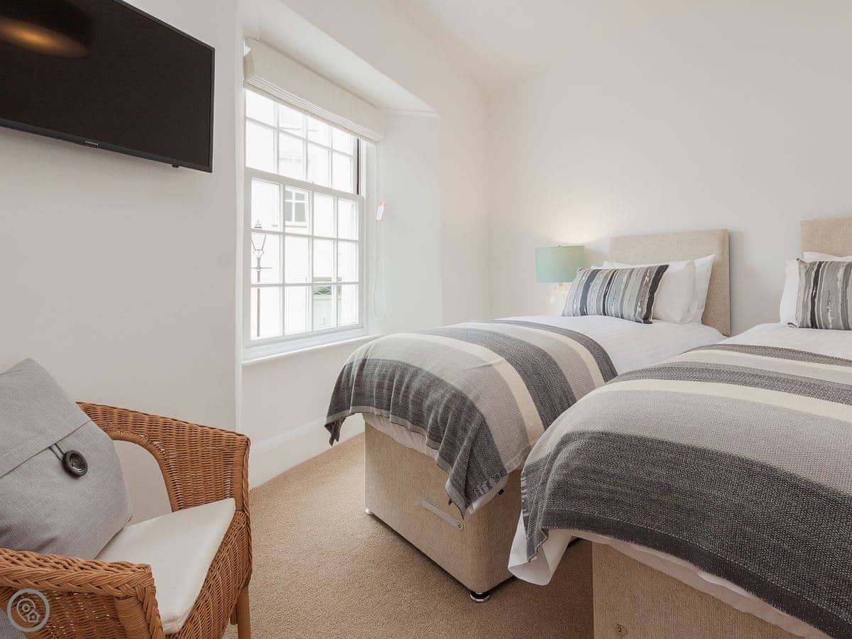 A recently renovated terraced house in a historic area of town and just a minute’s walk down to Dartmouth’s harbour and many shops and restaurants. The property, on three floors, has been refurbished throughout to a very high standard and with high quality fixtures and fittings. There are fabulous views from the living area, across roof tops to Kingswear and the mouth of the river beyond.
