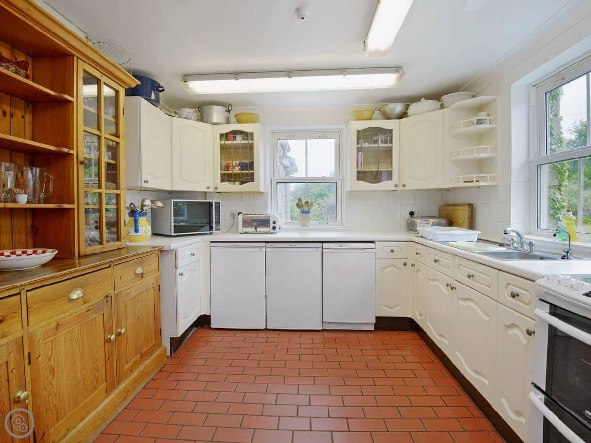 Fernlea is in Acton in Dorset. It's a stone house for a lot of people, really. It sleeps fourteen, seven bedrooms, and they all have their own bathroom. It's got a Four Star rating, which means it's well done and comfortable.
