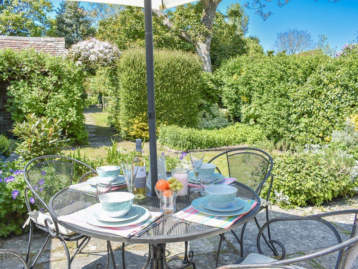 Tranquillity Cottage is in Winfrith Newburgh. It's a thatched cottage, one of a small row. Built in the 17th century, it's Grade II listed. The garden is a good size and backs onto fields.