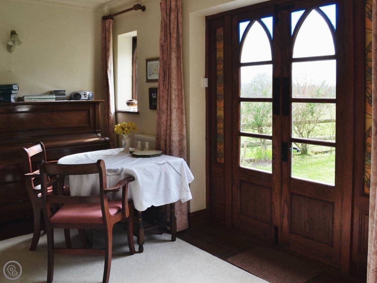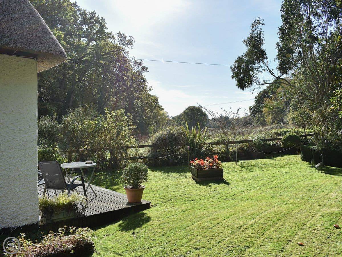 You get the verandah and garden to yourselves. It looks out over fields and trees. We get a lot of deer and birds through here.