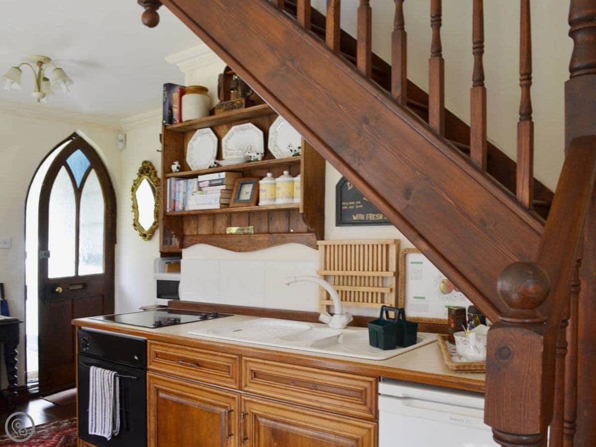 Inside, it's open plan. There's a washing machine, a dishwasher, WiFi, and a TV. Bedding and towels are included. We can put a cot in if you need one. Sorry, no pets.