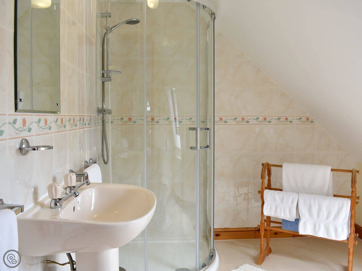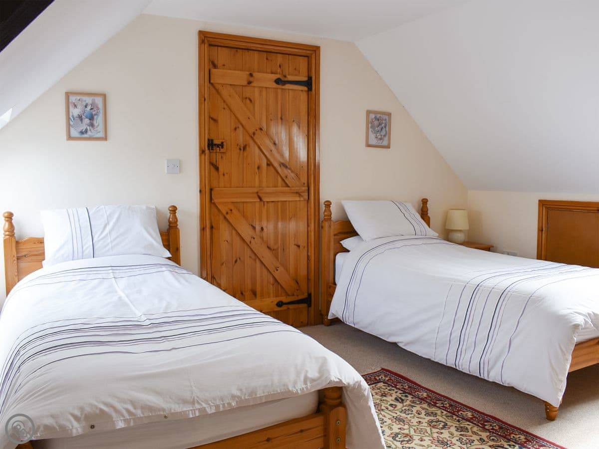 It sleeps five, in two bedrooms. Both bedrooms have their own bathrooms, which is handy. It's got a 4 Star rating, so it's comfortable and well looked after. Everything's included, like bedding and towels.