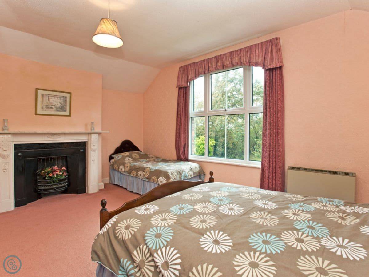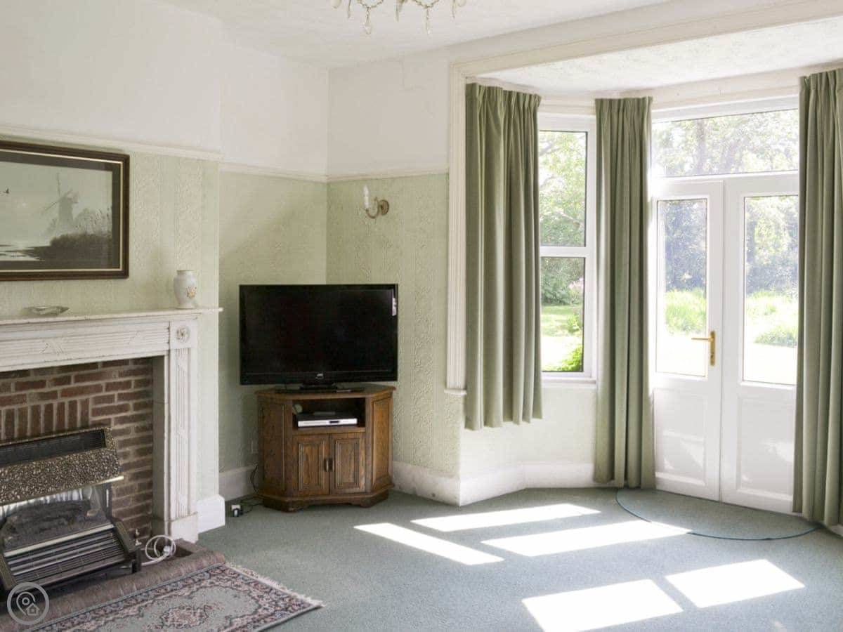 The garden is big and lawned, it's just for you. At the bottom of it, about a hundred yards away, there's a quiet waterway. The cottage is set in twelve acres of grounds, partly wooded. There are paths through the woods you can wander. There's a play area for kids in the trees, away from the water.