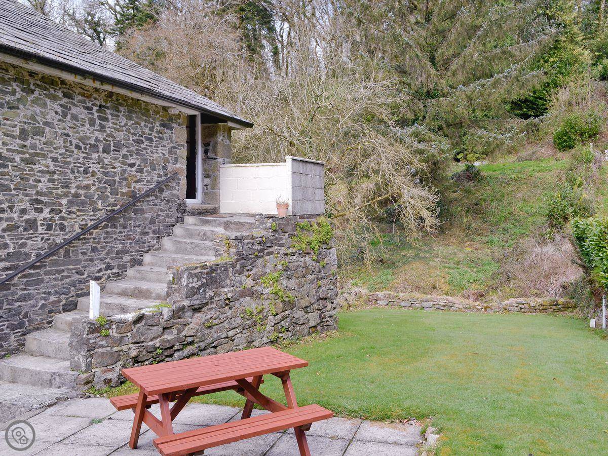 This is the Hayloft at Rosecraddoc Manor. It's a one-bedroom place for two people. The main house is old, Georgian I think, and listed. This bit used to be the hayloft for the estate, so it's upstairs in the old coach house. You get your own front door on the side of the building.
