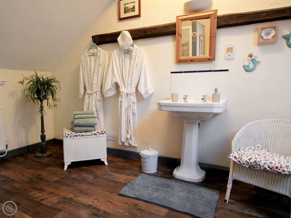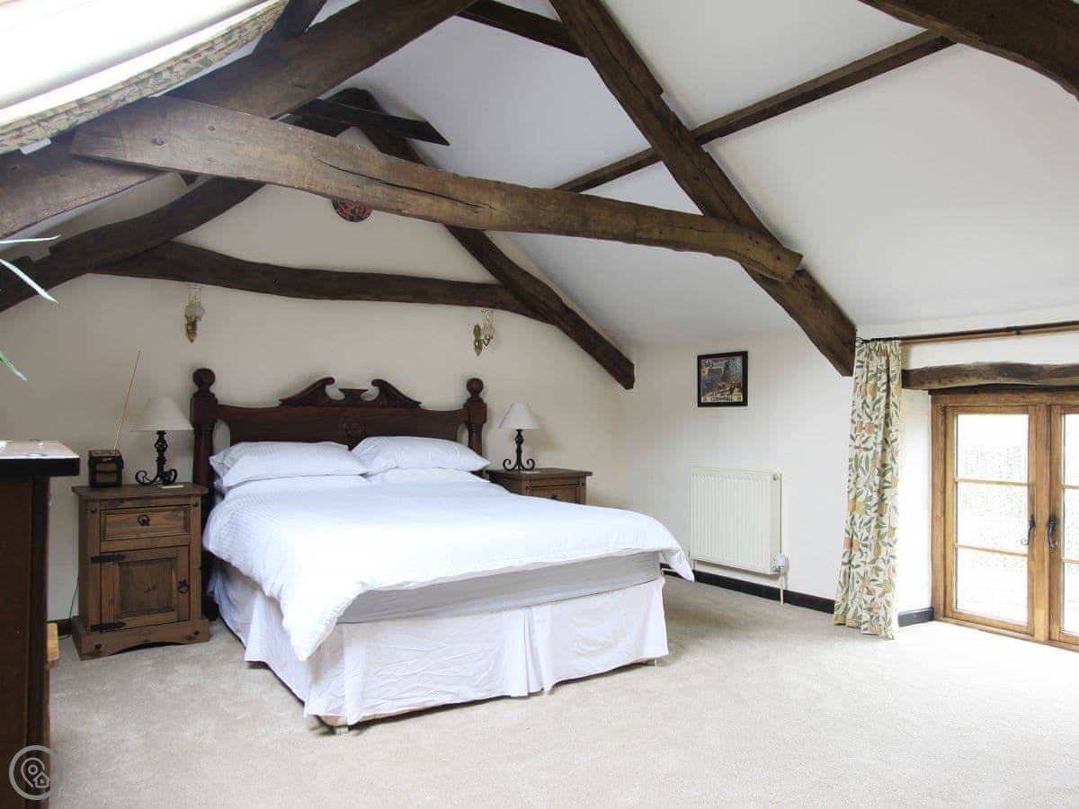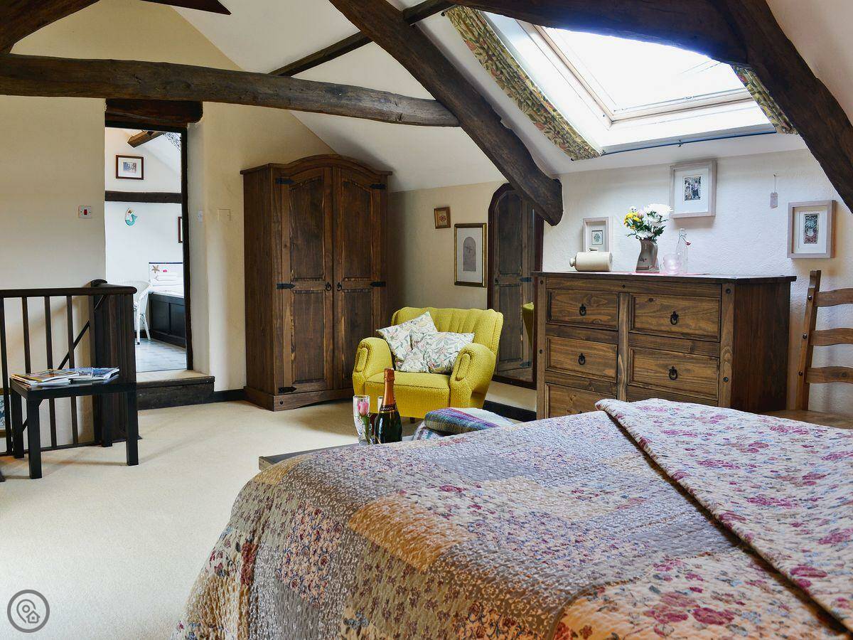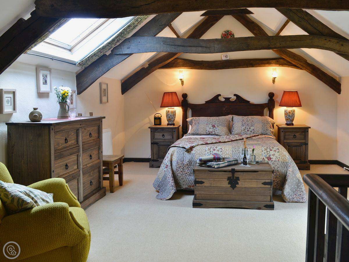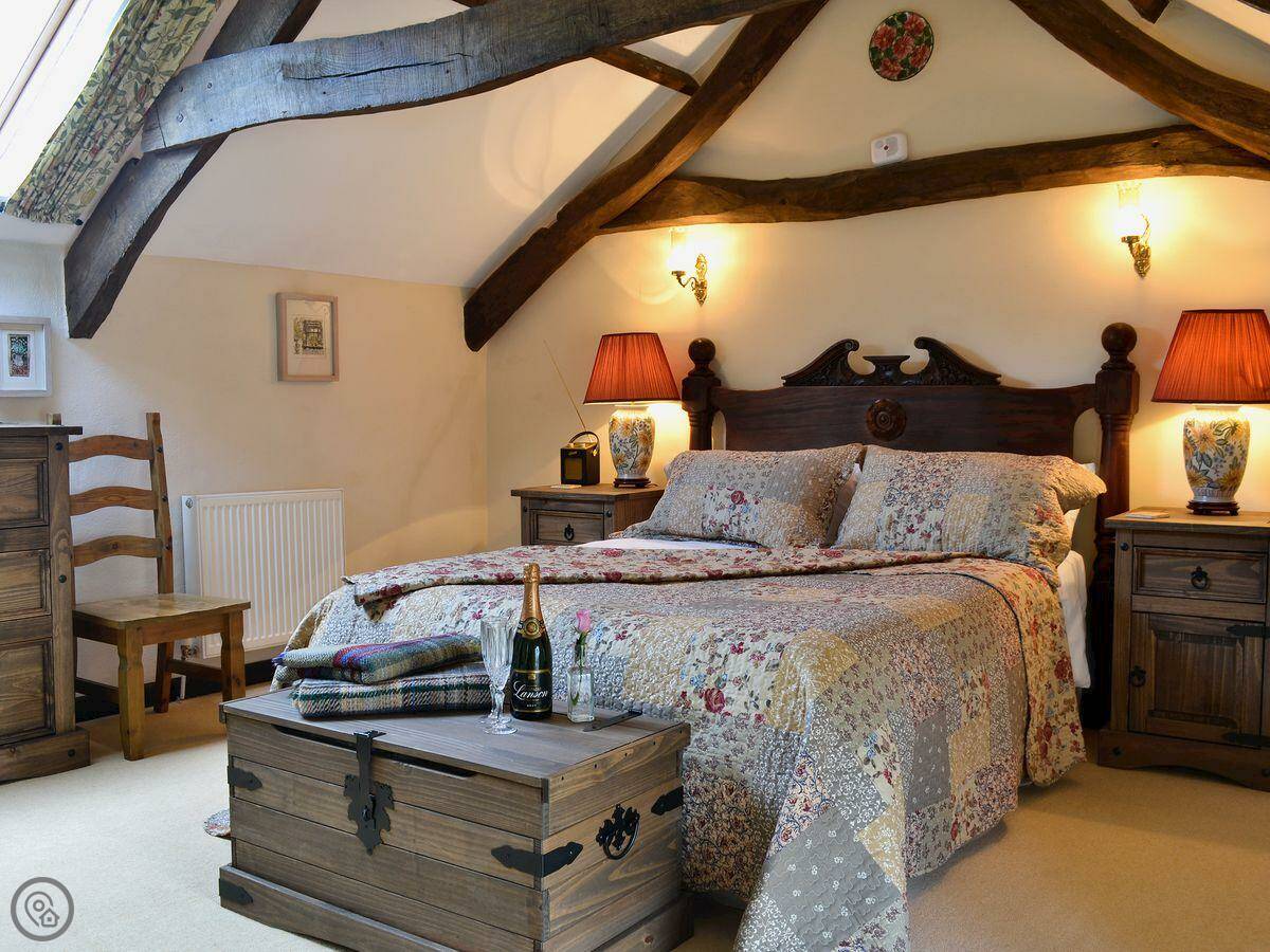 This is Passion Flower Cottage in Dippertown. It's an old stone barn we converted, so it’s got oak beams inside. It sleeps two, in one bedroom with a kingsize bed. The bathroom is en-suite and it’s big, with a separate bath and shower.