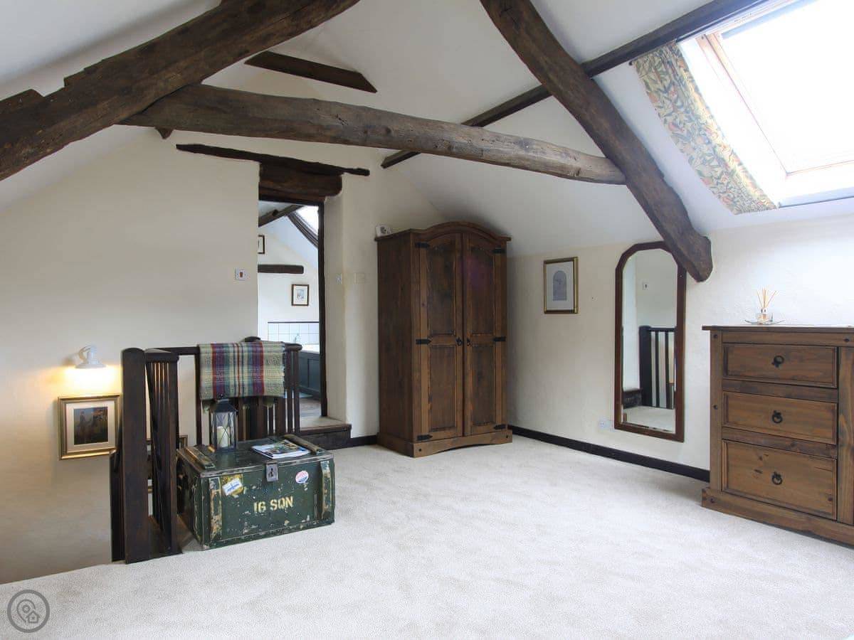 It's got a 4 Star rating, which means it's comfortable and well-equipped. There's a multi-fuel stove in the living room and a Smart TV. The wifi works fine. Bedding and towels are included, and there's a washing machine.