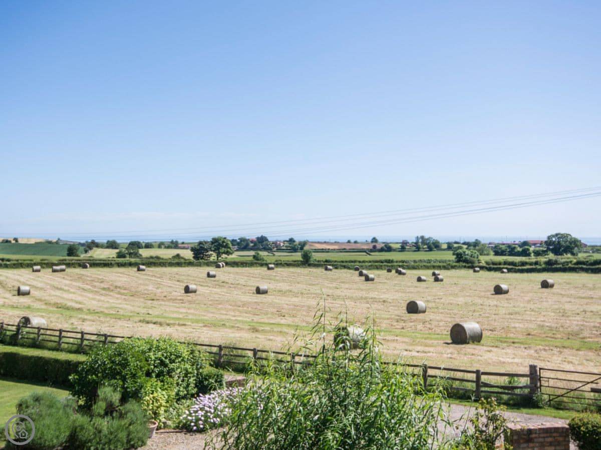 The garden at the back is enclosed, which is good if you've got kids or a dog. There's a patio with furniture. The view from the front looks over fields towards the sea and Scarborough Castle. You can see the castle from the upstairs windows.