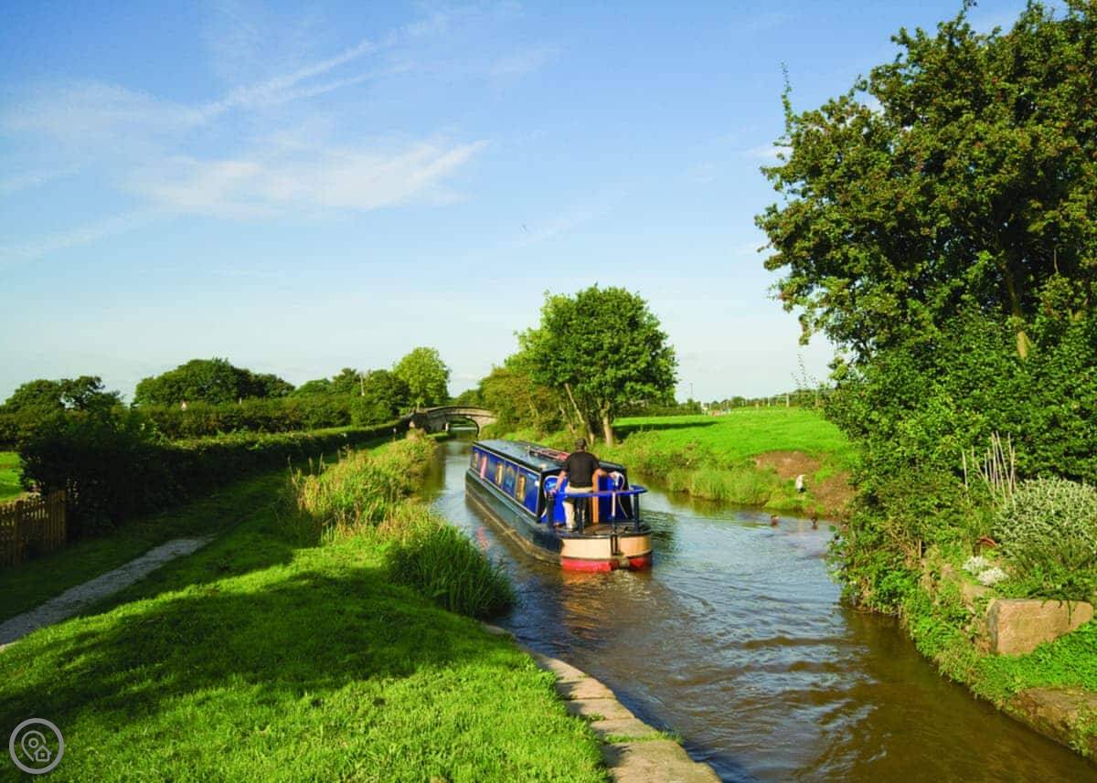 With peaceful views across the historic Macclesfield Canal and over beautiful Cheshire countryside, this superb detached waterside property offers spacious accommodation - and canal day boat hire, and fishing within 100 yards! Boasting its own fenced patio and garden, it is just 10 miles from the Peak District National Park, in an area rich in places of interest and good inns serving food, nearest 200 yards. Little Moreton Hall is just 1 mile. Town amenities in Congleton, 5 miles, whilst Chester, with its zoo and Roman wall, is within easy reach. The famous Pottery towns are only 8 miles away, with visitor centres, factory shopping and Waterworld swimming leisure centre. Within 15 miles are Quarry Bank Mill, Tatton Park, Biddulph Grange, Stapeley Water Gardens and the exciting Jodrell Bank Science Centre. The Alton Towers theme park with its array of ’white knuckle’ rides is 20 miles. There is a small marina shop on the adjacent boatyard, and a village shop can be found ¾ mile away.