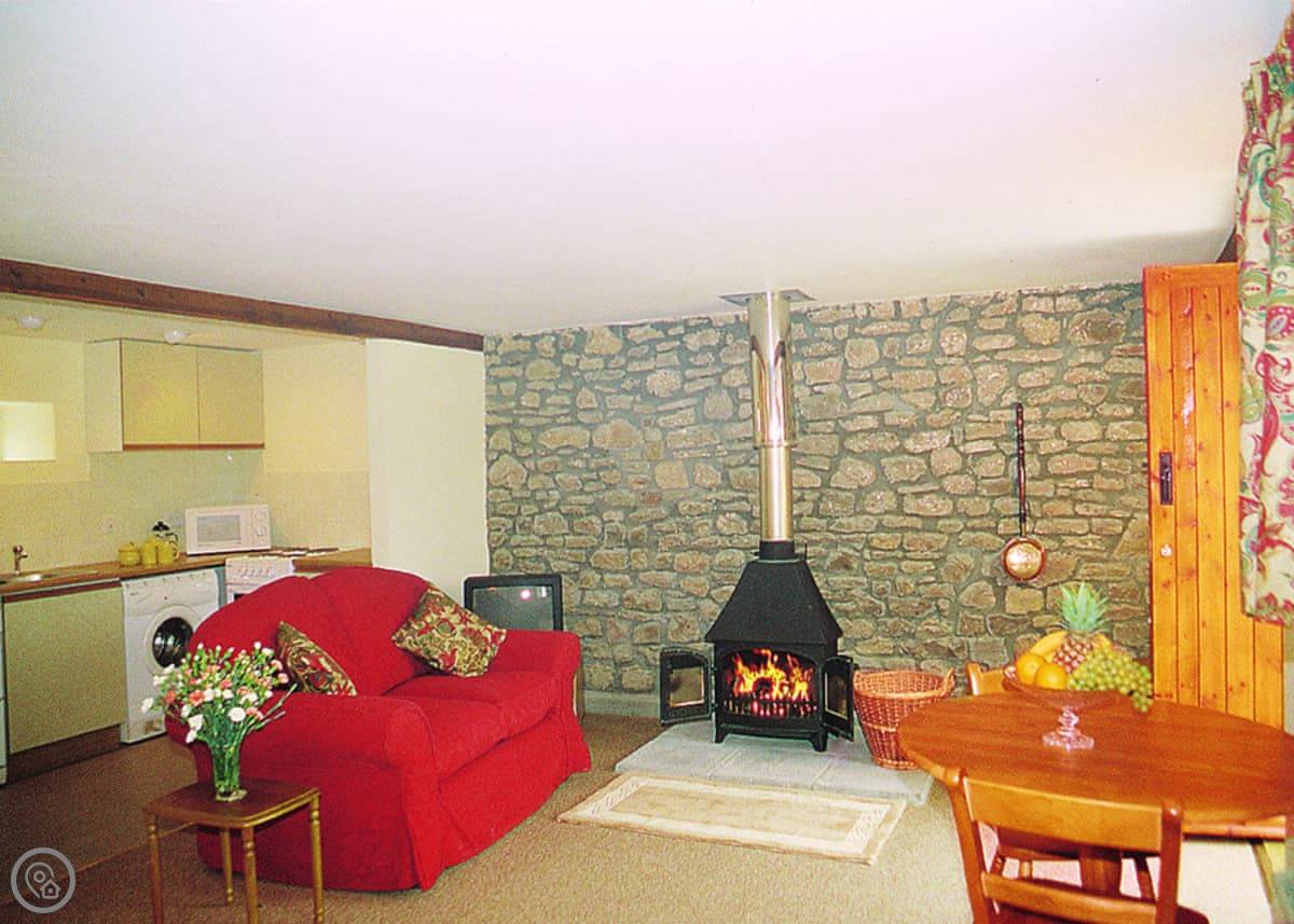 You get your own patio and garden space. Inside, there's a woodburning stove. There's a dishwasher and a washing machine. We've got WiFi, but it's a farm so it can be slow. There's parking right outside the cottage.