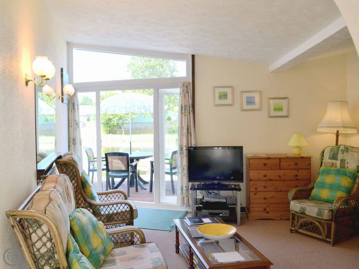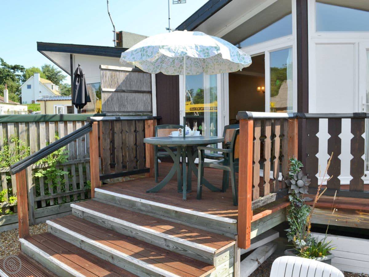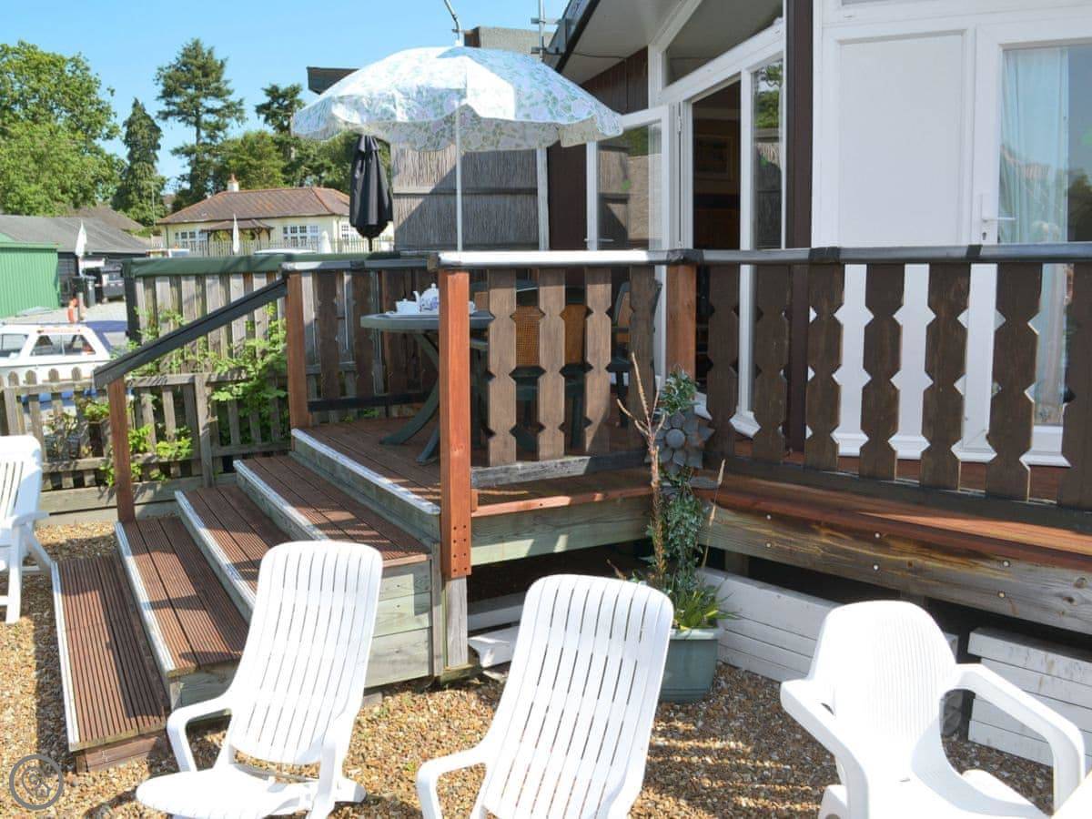 You have a verandah with steps down to a little gravelled garden by the water, and there are moorings if you bring a boat. The garden faces south, so you get the sun. It's quiet, but you can watch boats going up and down from there.