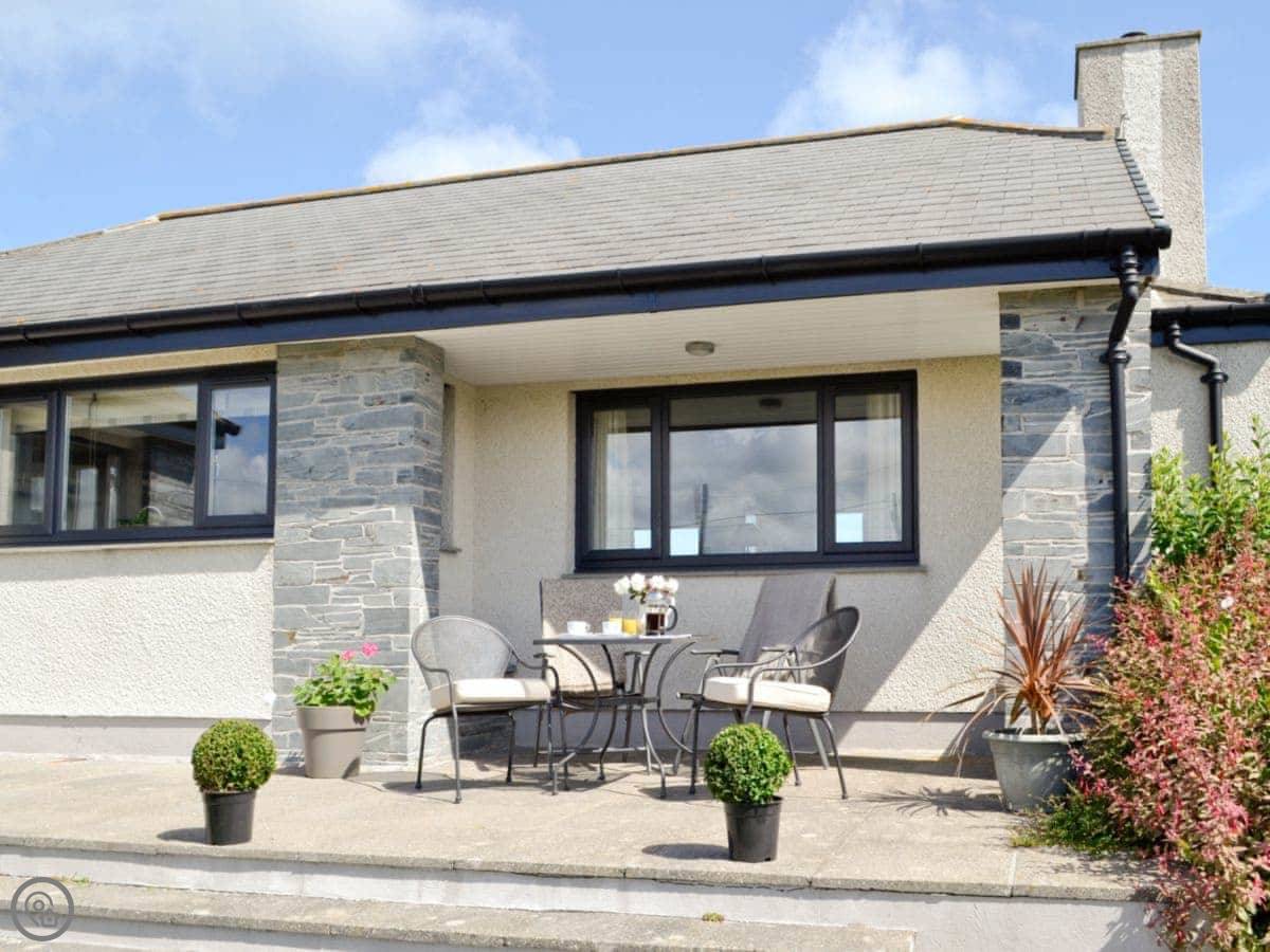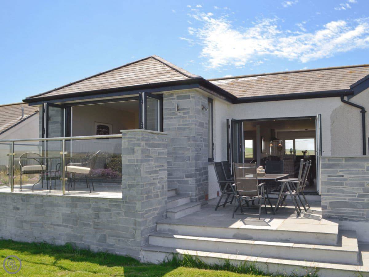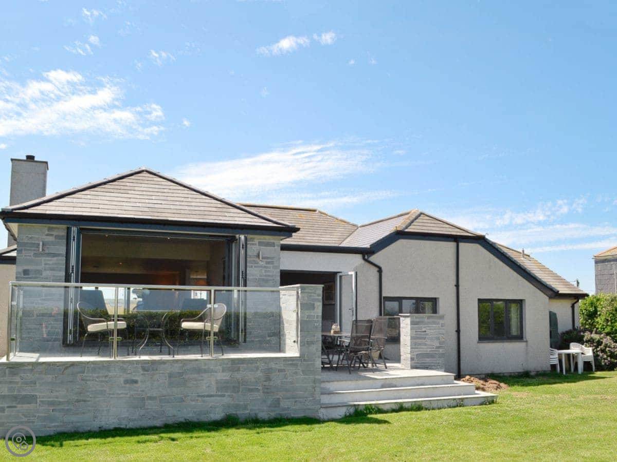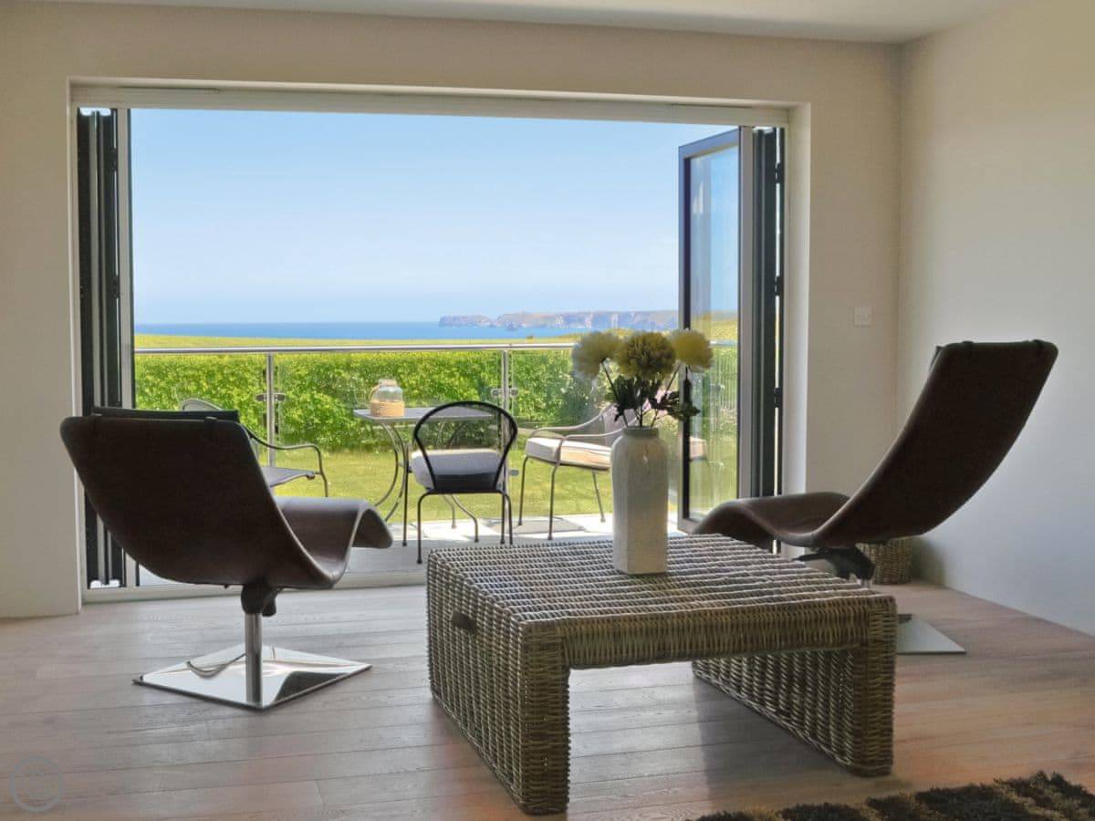St Illex is a bungalow up on the headland above Port Gaverne. It's detached and all on one level, which is good if you don't want stairs. The main living area is open plan, but split over two levels, with big bi-fold doors that open onto the patio. The main thing is the view. You get a good look along the coast from there.