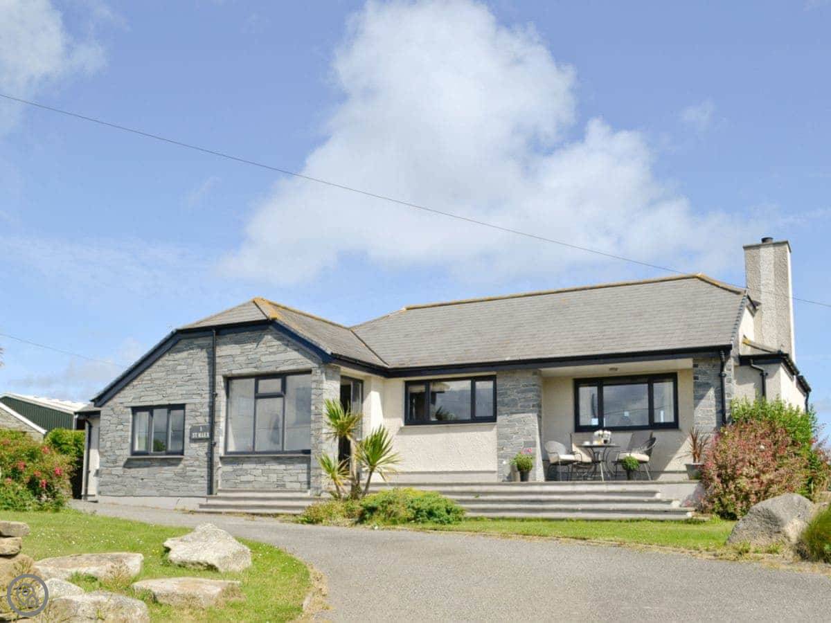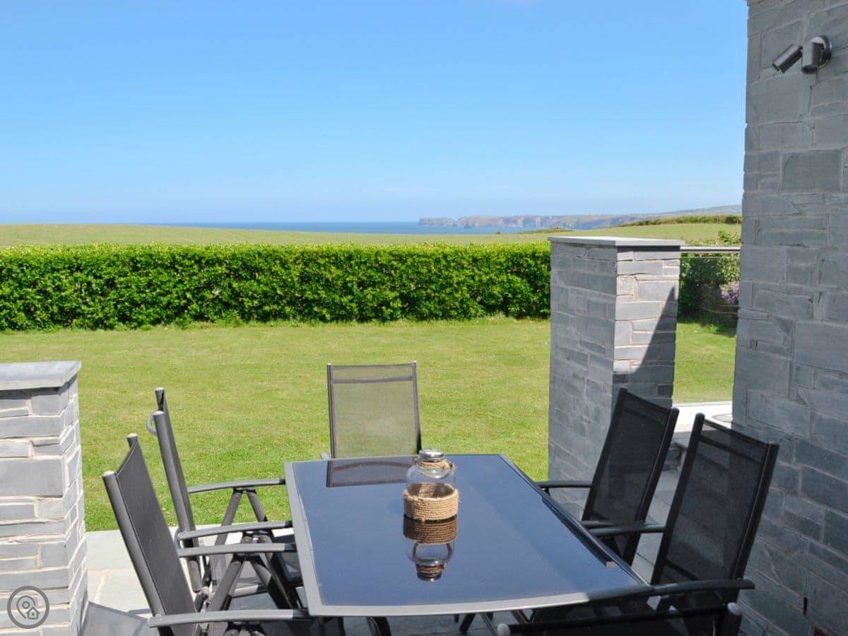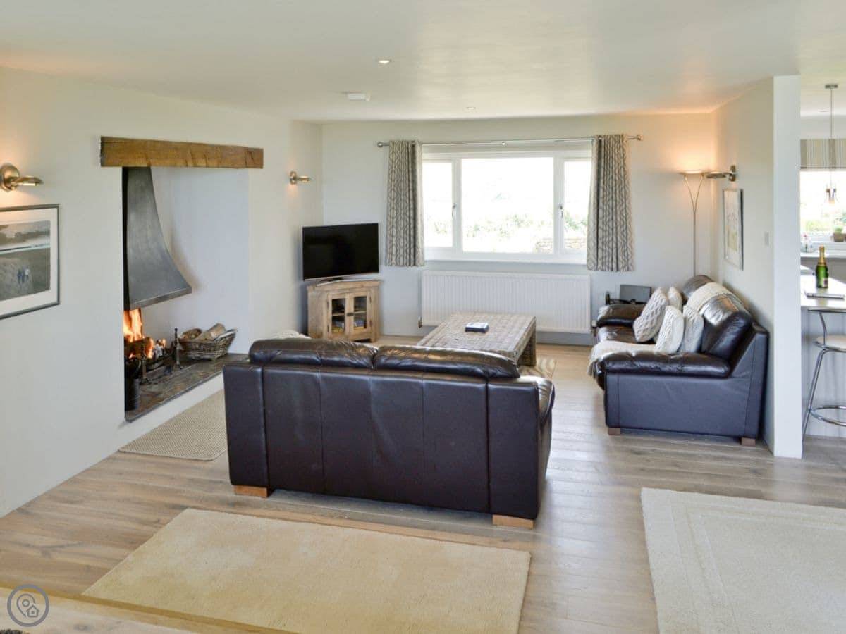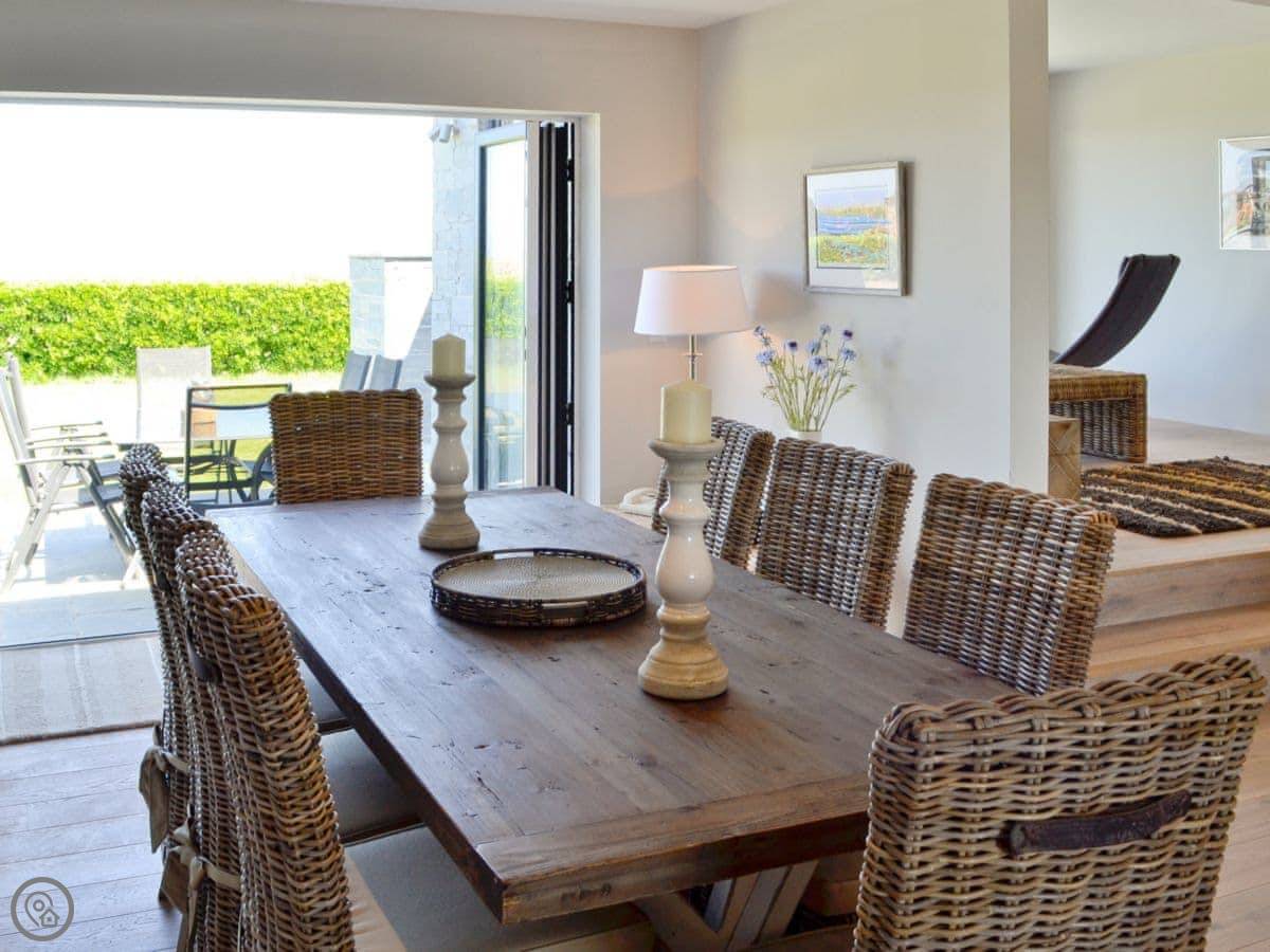 St Illex is a bungalow up on the headland above Port Gaverne. It's detached and all on one level, which is good if you don't want stairs. The main living area is open plan, but split over two levels, with big bi-fold doors that open onto the patio. The main thing is the view. You get a good look along the coast from there.