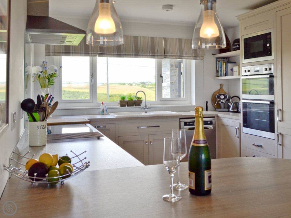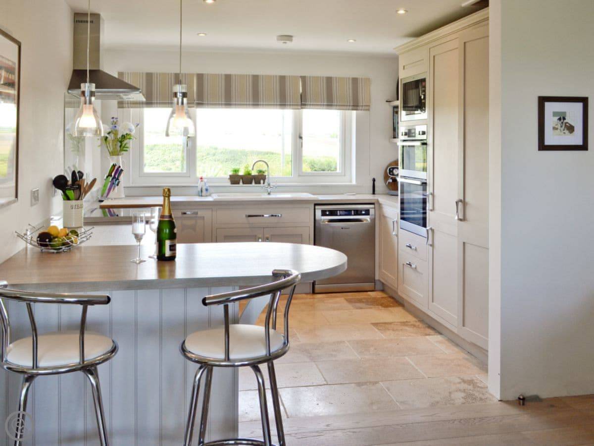 The kitchen is new and has everything you'd need. There's a wood burner for cooler evenings, and the garden is fully enclosed.